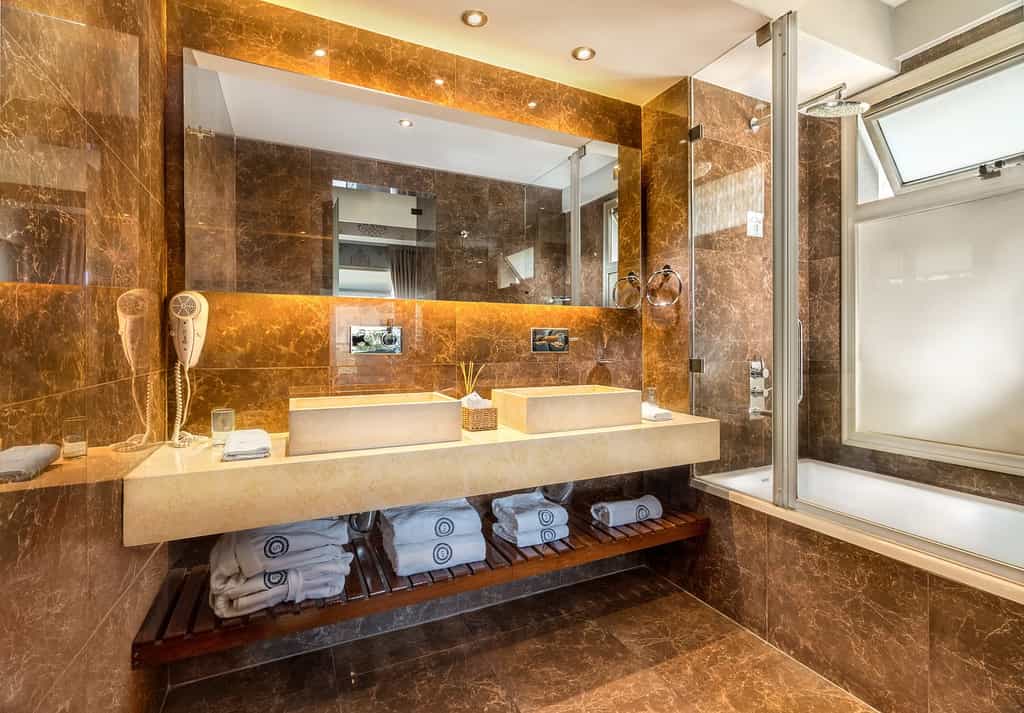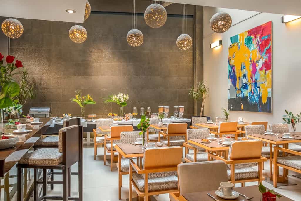 The lobby makes quite an entrance with its brass sputnik chandelier and glass portholes in the floor revealing the art gallery below. Two bars serve light bites throughout the day, though the décor feels somewhat tired with its neutral browns and bronze accents. Downstairs, a quirky micro-cinema and rotating art exhibitions add cultural clout, while the rooftop houses a small fitness centre, sauna and that famous cemetery-view pool. The whole setup feels more residential than resort - perfect if you prefer your hotels without the fuss.