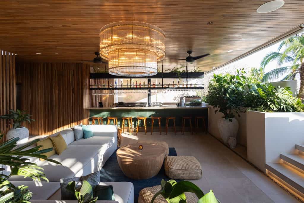 Nestled on the edges of the lush jungle, the residences blend the luxury of a hotel with the privacy and freedom of a home. Each residence has two rooms with king (or bunk, in the case of the family accommodation) beds. They are decorated in soft pastels with pretty pottery dotted around, and light streams in through floor-to-ceiling windows. The largest has its own kitchen, barrel sauna, ice bath and private garden. The bathrooms are beautifully done with wooden panels and a rainfall shower, of course.