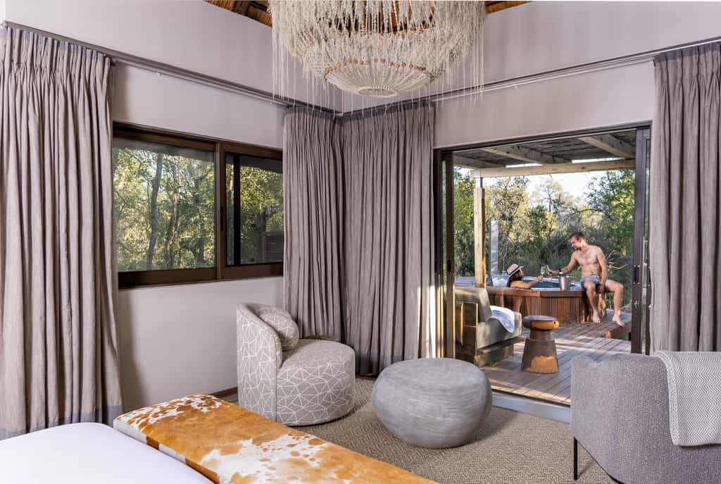 Simbavati has eight beautiful suites, draped in white and grey textiles, and adorned with cushy armchairs, fringed lamps and wildlife-inspired artwork. They are practical too and you'll find fans, electric blankets, hair dryers, minibars and eco-friendly insect repellent that is released every few minutes Bathrooms are spacious and pristine with a double vanity, loads of cupboard space, and an outdoor rain shower. There are also four family suites - the main bedroom has its own open-plan bathroom and large tub, and two bush suites, which have a wood-fired hot tub on the deck.