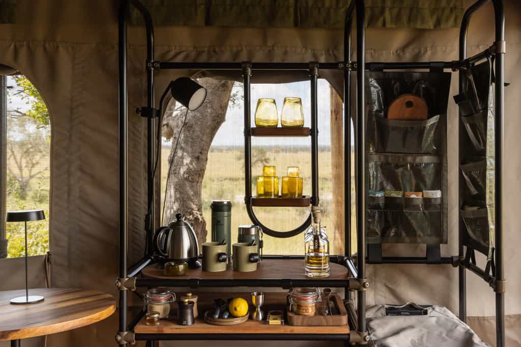 Singita Mara River Tented Camp has six bohemian-chic luxury tents, which are designed using solar power and recycled and natural materials, in order to minimally impact the surroundings. They are done up with a blend of canvas, wood and other locally sourced materials in a sophisticated safari style. Each tent has an en-suite bathroom with with flush toilet, shower and sink, and a private open-air tub. The tents all have sweeping views of the Mara River from their private decks.
