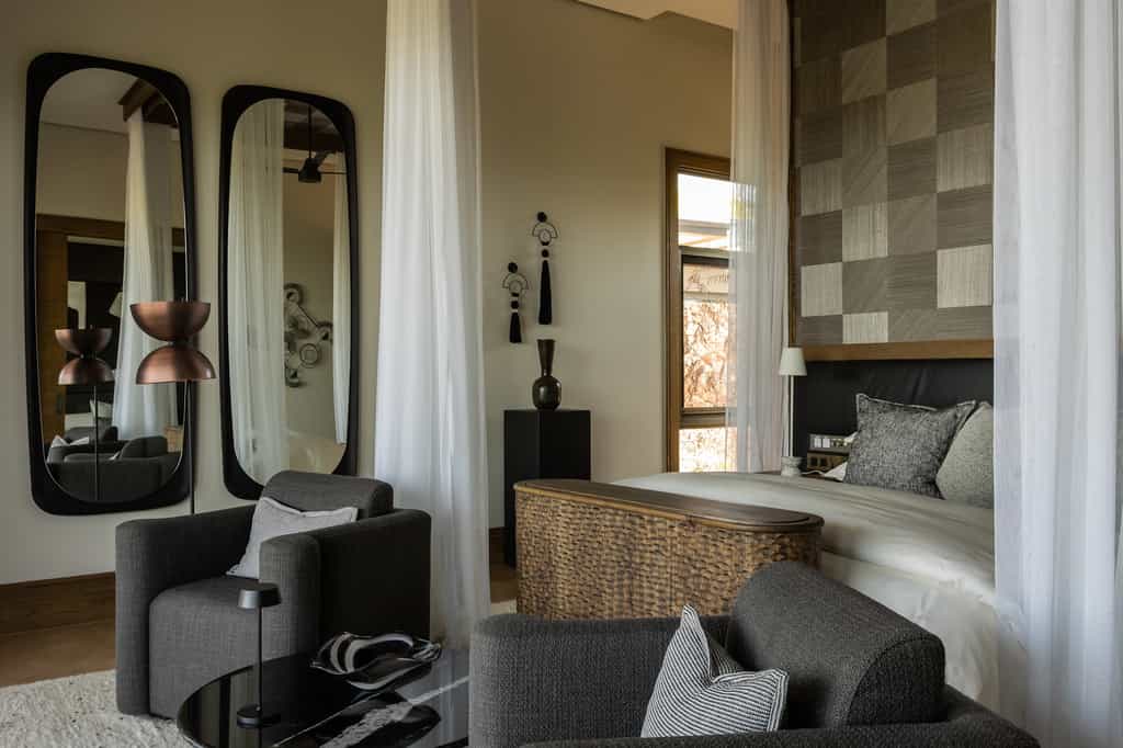 The villa has five expansive suites, each paying homage to one of the Serengeti's iconic species, which feature in its decor and textiles. Each has a generous deck with panoramic views of the vast plains below. Inside there's a large, pillowy bed where you can enjoy the same vistas through floor-to-ceiling glass doors, as well as a dressing room, small sitting area and outdoor shower for truly atmospheric ablutions. Three of the suites also enjoy their own hot tub.