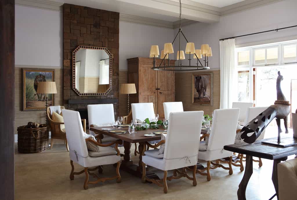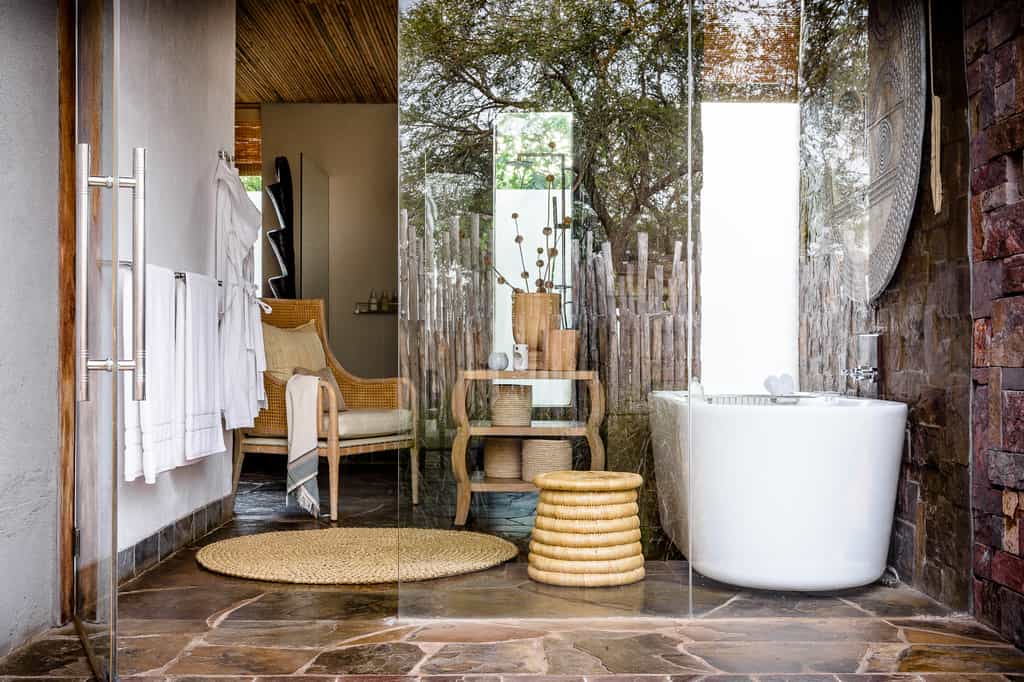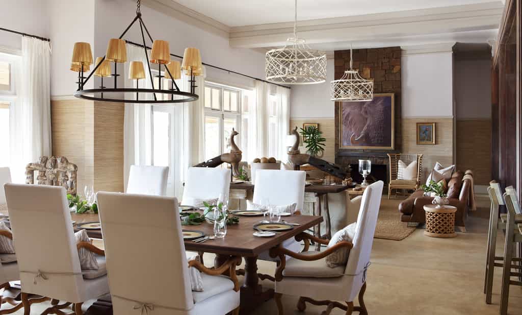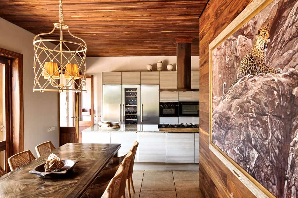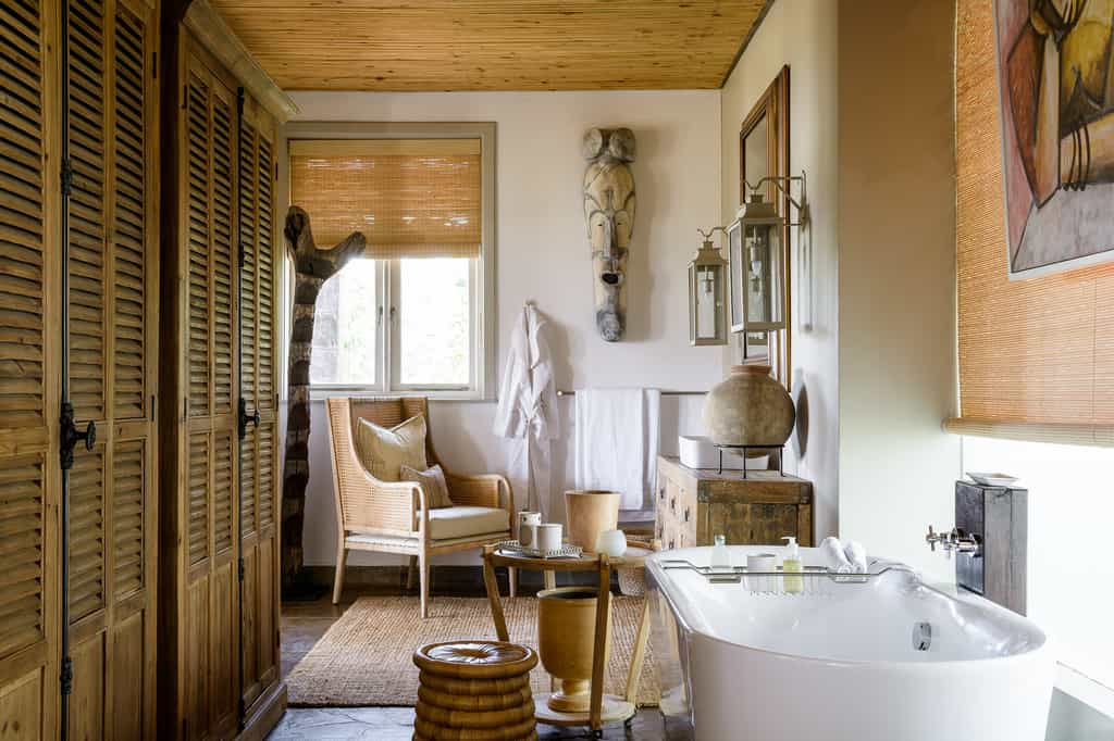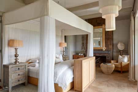 Take an opulent colonial-era African residence and fast forward to the 21st century. This is what South African design mavens, Cécile & Boyd, have had a hand in creating at the exclusive-use estate. It’s a hybrid design of countryside indulgence and African nouveau. A large dining and lounge area, set in the neutral palate of the surrounding landscape, opens onto a stone terrace and expansive wooden deck with contemporary furnishings overlooking the plains and 25-metre lap pool.