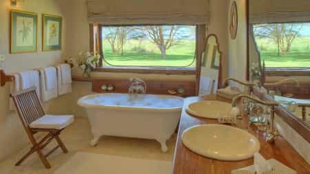 Each of the three bedrooms comes with Victorian bathtubs, rain showers and fireplaces that staff light each evening. The master suite adds an outdoor shower and feels deliberately secluded from the other two bedrooms, whilst the twin cottage's two rooms share their own entrance and sitting area. Décor channels understated safari elegance - handmade organic toiletries, wildlife sketches on walls, writing desks positioned to face the views. Large windows mean you're never far from whatever's happening outside, and the digital safes handle valuables whilst you're out tracking rhino. Bathrooms are unexpectedly spacious with twin washbasins and proper storage, recognising that families don't travel light. The whole setup acknowledges that sometimes people want proximity without being on top of each other.