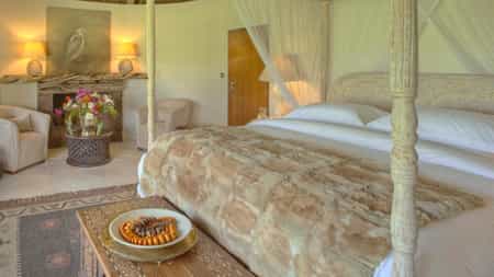 The house splits across three distinct cottages connected by a courtyard. The central living and dining space anchors everything with its two fireplaces, private bar and views across to the wetlands through picture windows. It's the sort of space that encourages long breakfasts and sundowner sessions around the fire pit on the private deck. The master suite sits separately with its own outdoor shower, whilst the second cottage houses two en-suite bedrooms - perfect for families with older children or two couples travelling together. Your heated pool provides the best wildlife watching spot without moving; elephants, zebra and buffalo regularly appear whilst you're floating about. Though self-contained, you're still part of Sirikoi's broader world - the main lodge's 18-metre infinity pool, gift shop stocked with African art and sculpture, and that remarkable organic garden growing over sixty varieties of fruit and vegetables all remain accessible.