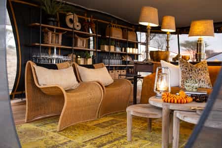 The Siringit Migration Camp has 8 luxury spacious canvas tents designed to bring you closer to the natural surroundings. The Bedouin-style tents are positioned on a raised platforms to give you a 360-degree view of the Serengeti plains. Each of the luxury canvas tents can accommodate up to two guests, while our inter-connected family tent can accommodate up to 4 guests (2 adults & 2 children). All canvas tents have en-suite bathrooms with double vanity, hot water on demand, and eco-friendly flush toilets.
