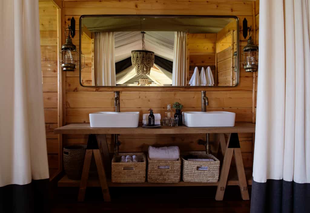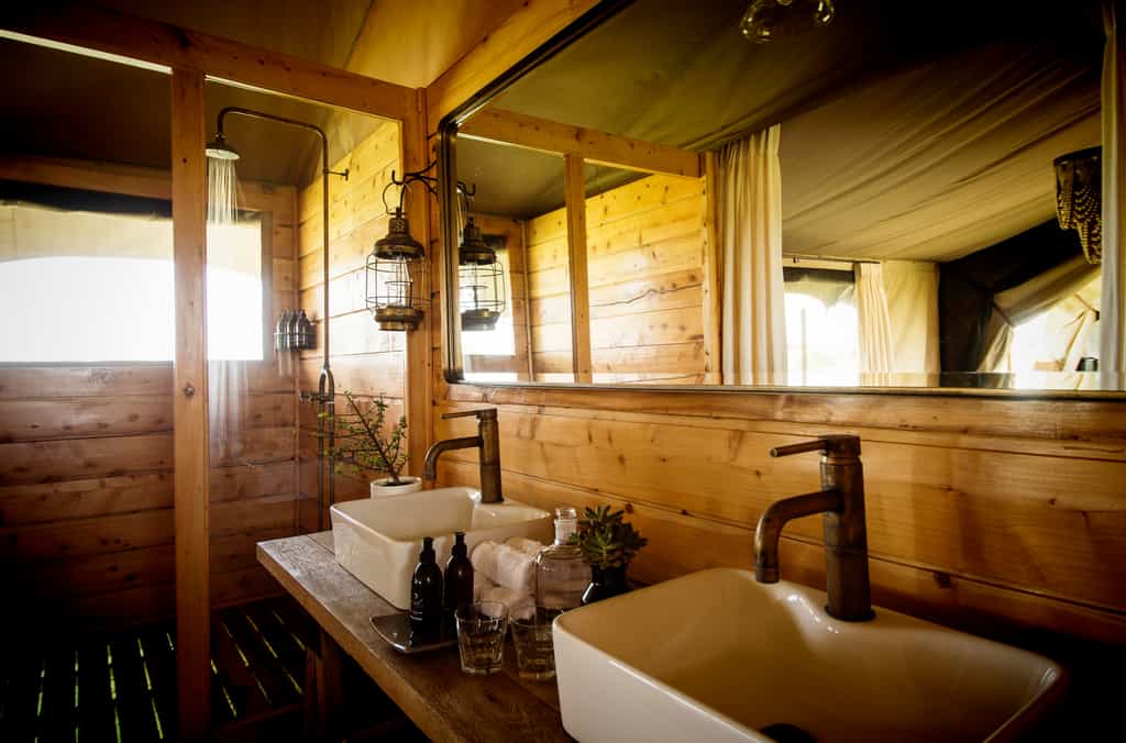 Eight spacious tents sit on raised Teak platforms, each sleeping two, as well as a family tent which sleeps six. Furnishings are a blend of classic 'under-canvas' style and contemporary chic: think swathes of pale canvas, textured natural fibres underfoot, scattered rawhide rugs, vintage leather and brass fastenings, and chunky modern furniture with beautiful African-inspired fabrics. All tents have en-suite bathrooms with hot running water, flush toilets, double basins, a shower, and a private veranda.