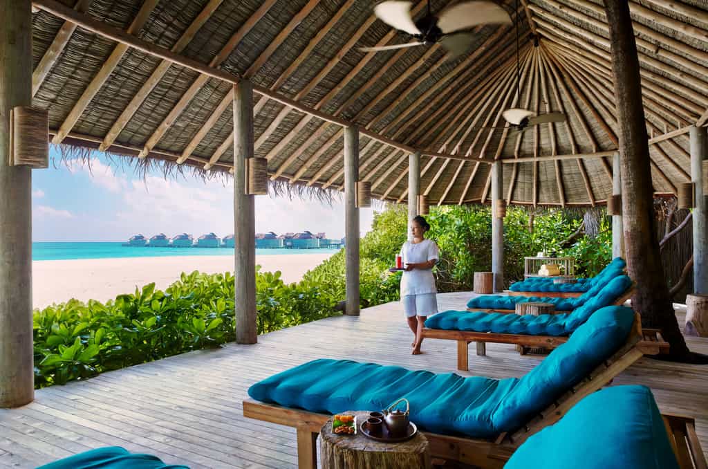 At the very end of the jetty, Longitude serves freshly-caught seafood dinners and the Chill Bar has layers of cushioned sit-outs at the water's edge - be sure to ask about the 'liquid experiences'. For an extra special dinner, enjoy five courses at the Chili Table in the resort's organic garden. Be sure to stop by Sip Sip, a sunken bar with tree-trunk stools and views of the large pool inset with circular lounges. The spa truly belongs on an island with nine treatment nests along the beach - plus a lovely open-air yoga studio.