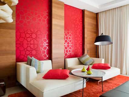 Each room is bold and eye-catching with colourful feature walls, plush, striped carpets, and avant garde art pieces. The larger suites have a spacious lounge with chaise longue-style couches and a whirlpool bathtub, but all have French doors leading onto a private terrace. Set in the gardens, the villas are mod and stylish with a private heated pool, two en-suite bedrooms, a dining area and kitchenette. If you're a real golf buff, the Lacoste Villa has an exclusive-use putting green for a spot of practise before you hit the course.
