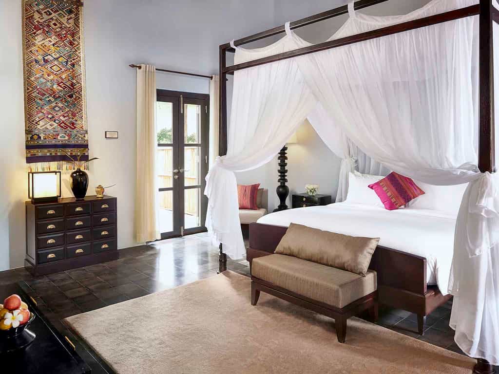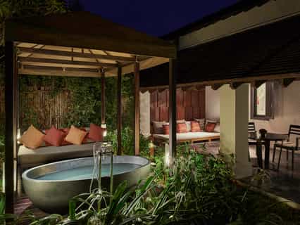 Following the design of the rest of the hotel, the 25 suites are sophisticated and sleek with plenty of dark wood furniture and polished concrete floors. Bright furnishings and fluttering textiles prevent them from ever feeling stark. Categories range from Garden and Heritage to Pool and Governor; all feel luxurious and sumptuous but range in size, and some of the larger suites even have private pools. Whichever you choose, you'll find bathrooms with tubs and rain showers, outdoor terraces with daybeds, and all the mod-cons you could need.