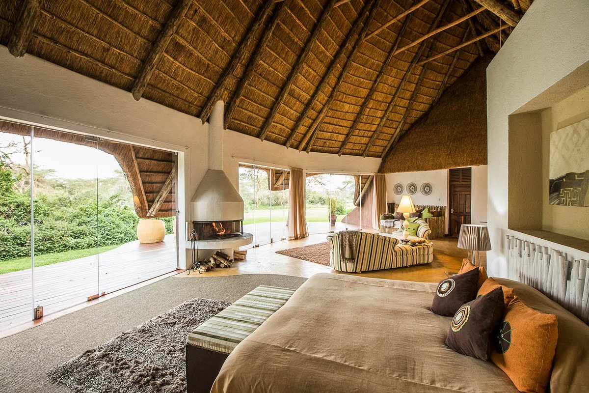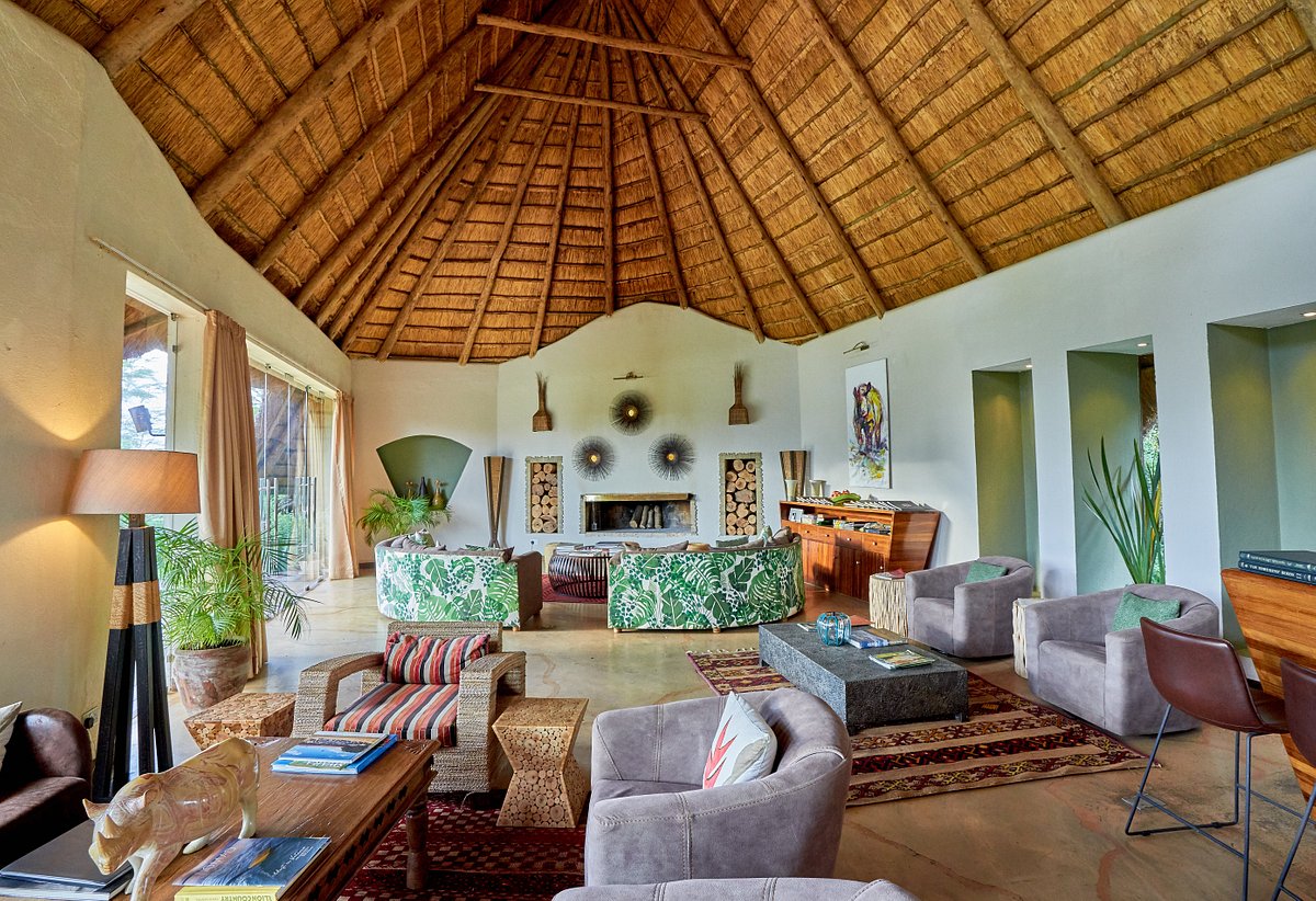 Modern and chic the five individually designed cottages are furnished with contemporary safari swank in mind. Floor to ceiling glass windows and sun verandahs optimise the views out over the plains and thorn trees towards the mountain beyond. There is a private lounge area, open fire palaces and plenty of eclectic natural furnishing to allow a light, open plan flow that allows for a feeling of lightness and brightness under comforting thatch roofing.