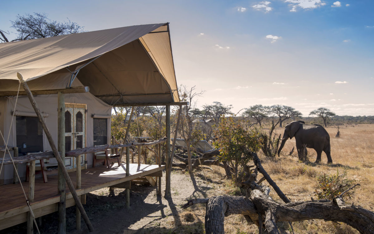 In the heart of camp is a large rectangular tent, surrounded by low decking. This is home to an intimate lounge, the camp's large dining table and a simple but adequate bar and tea station. Just outside this area is another lounging area - a great place to while away the hours (if a bit exposed during the midday heat). Down a few steps is another large deck, in the centre of which is the fire pit which provides oodles of evening atmosphere before and after dinner. One of the camp's most notable features is the large cement basin just off the deck, from which elephants frequently quench their thirst.