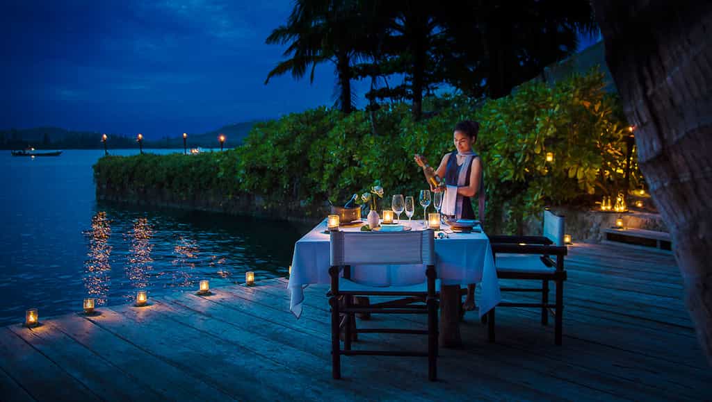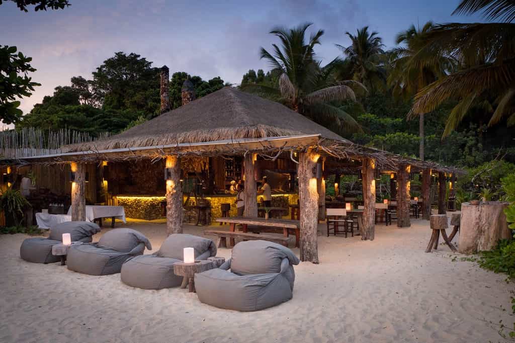 Set on stilts over the turquoise shallows, Vista has idyllic 360° ocean views and an A-list menu of Khmer cuisine and seafood (all locally sourced!). You'll find it easy to spend a few hours here with cocktails on the sofa'd deck and inventive desserts served in lightboxes. The Driftwood Bar offers easy-breezy pizza evenings and late-night mojitos from bean bags on the sand. Lay out on day beds on the beach, soak in the seaside infinity pool or enjoy spa treatments under the stars.