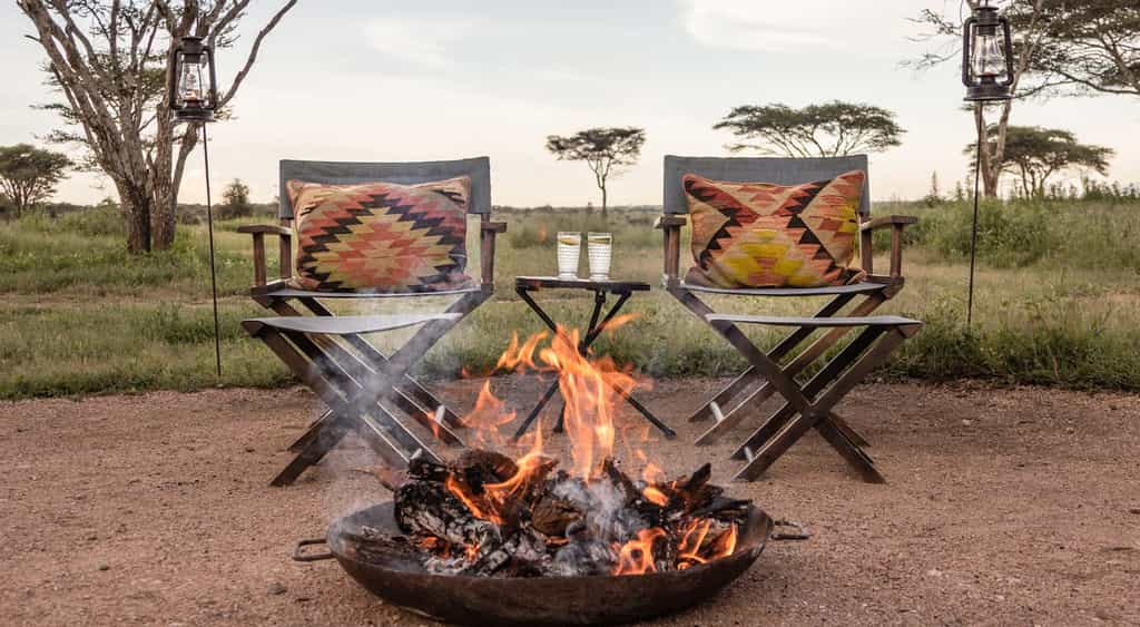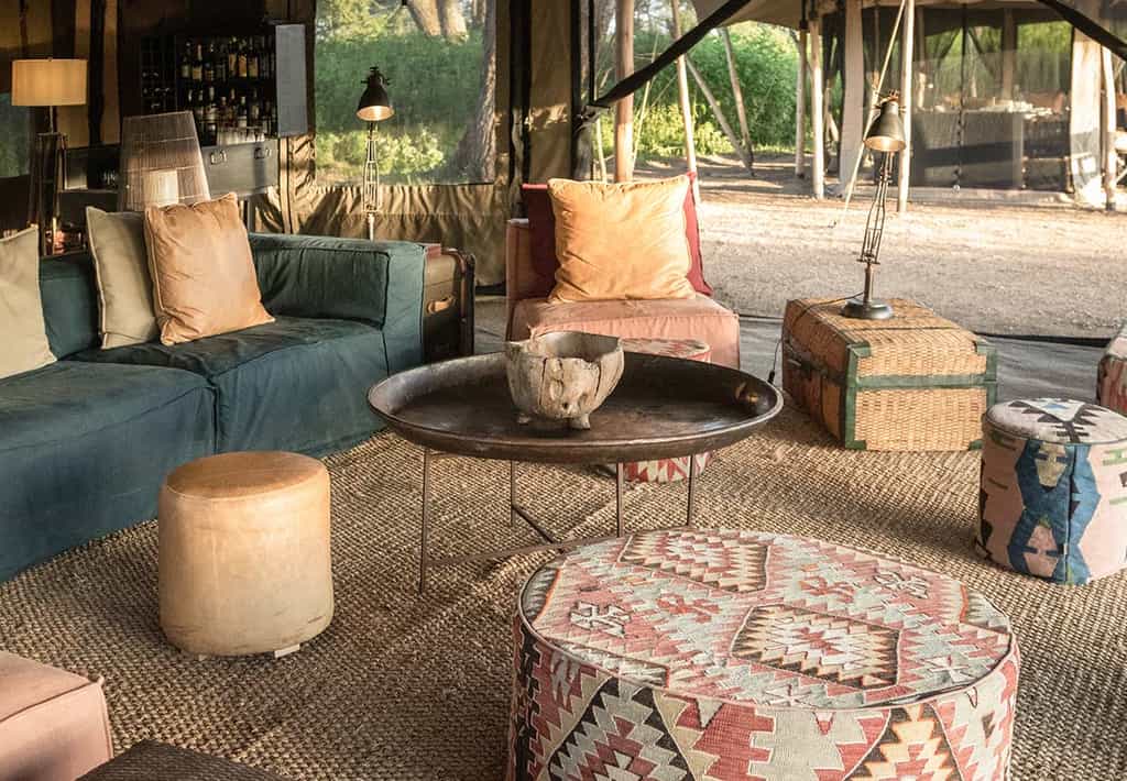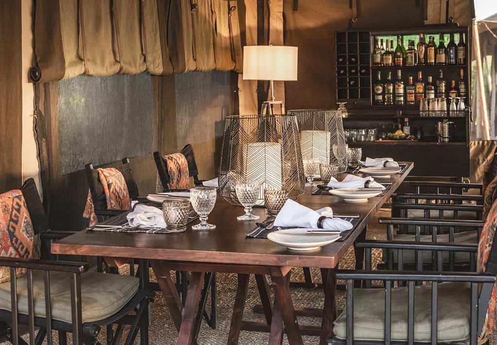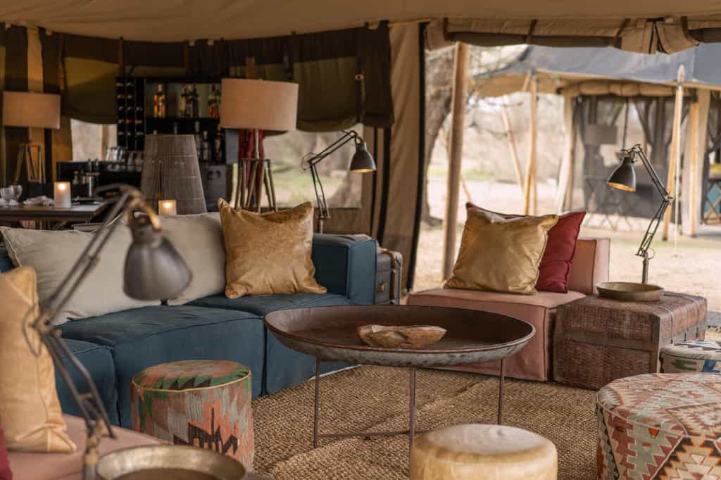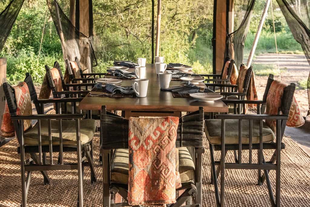 Each of the two sub-camps has its own main mess tent and lounge (the latter may be arranged outdoors if the weather is good, as it often is between December and April). Settle back and enjoy 360° views of the savannah plains. The mess tents-cum-lounge areas are simple shelters, but they're beautifully furnished with white tablecloths, directors' chairs, plush sofas and earthy African rugs. Lantern-lit at night, they conjure the romance of the earliest African safaris and settled round the fireplace, you'll feel at one with the wilderness.