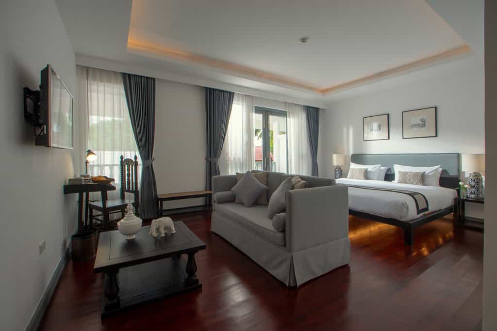 There are a range of contemporary rooms to choose from at the Souphattra and every taste and budget will find something to suit. Deluxe and pool view rooms each offer double or twin beds, a private terrace or balcony, and an ensuite bathroom. One step up are the three junior suites that are almost exactly the same but with larger King size beds. Then there's the Souphattra Suite, again with all the same facilities, but in super-size.