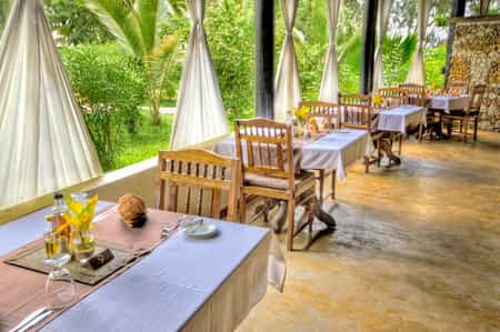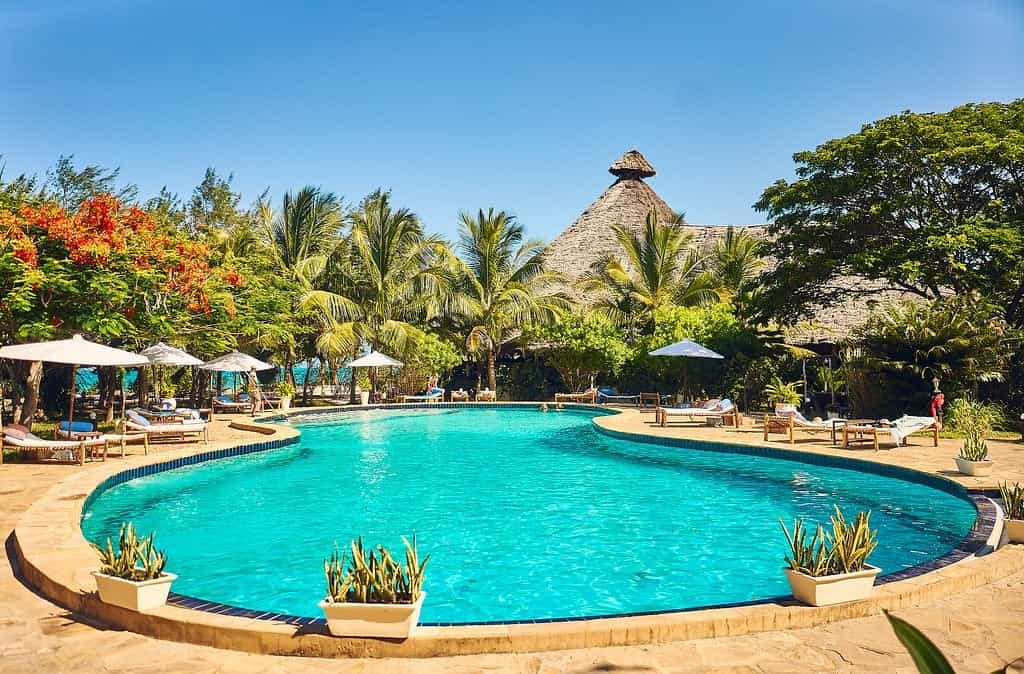 Surrounded by lush foliage and just steps away from the beach, the resort's peanut-shaped pool is just the place for a dip or an evening of live music. The main restaurant, Makuti, serves a bevy of Indian, African and seafood dishes presented on rustic trays laid with flowers. The Ocean Lounge is a casual lunch spot filled with day beds covered in patterned cushions, deep leather couches and an old-school gramophone. Spend a few hours in the cushy library or relaxing at the spa.