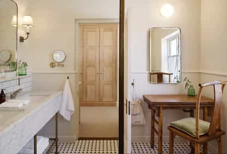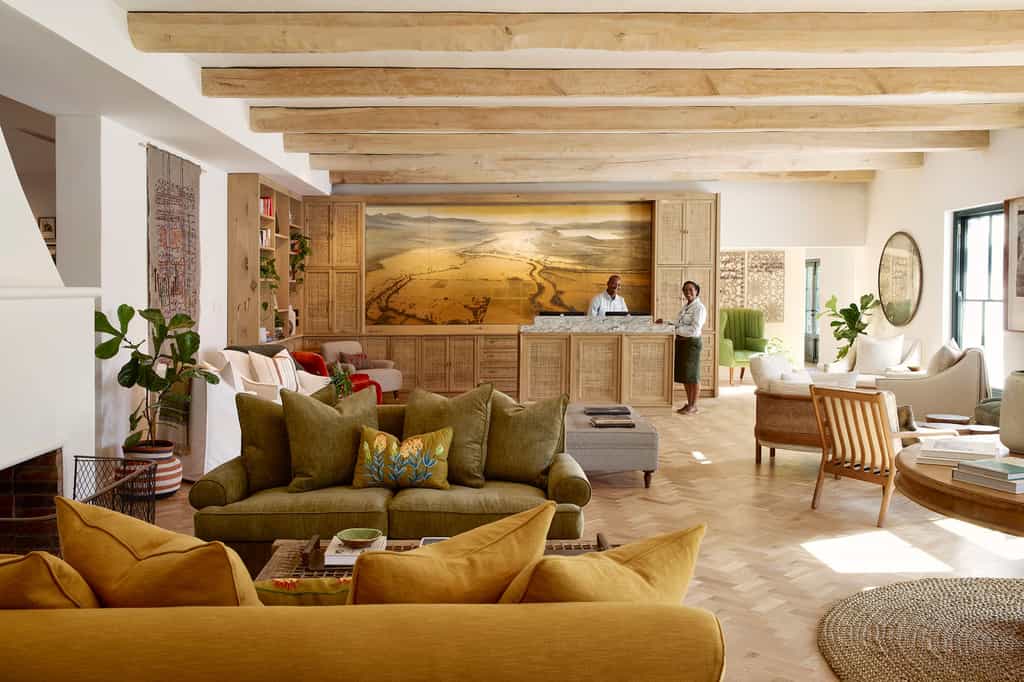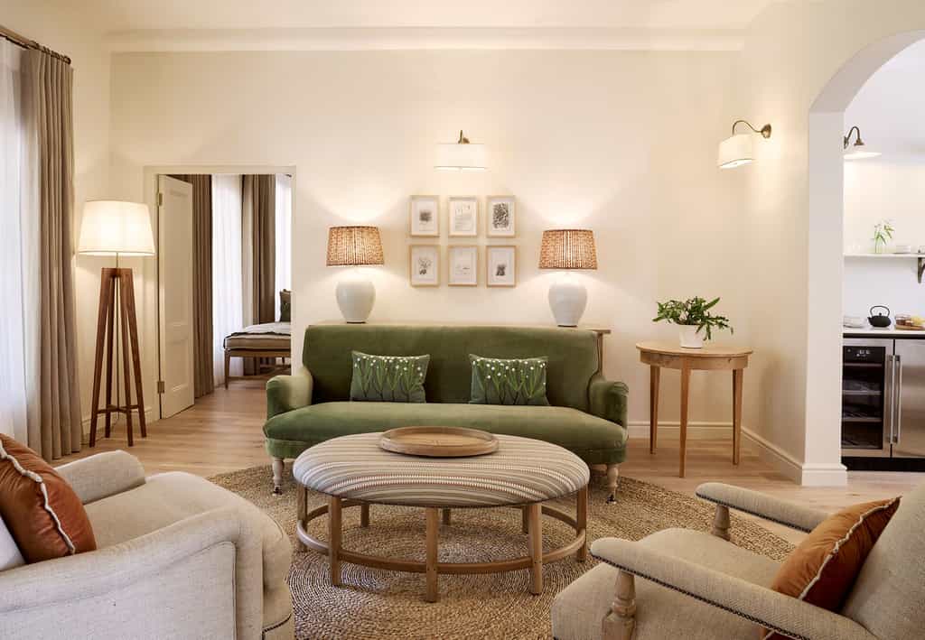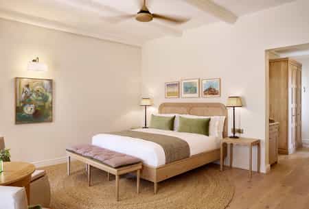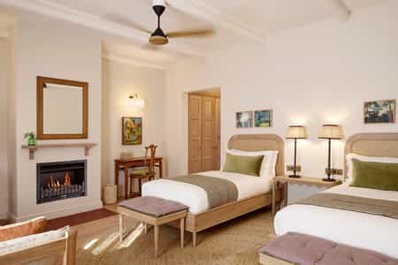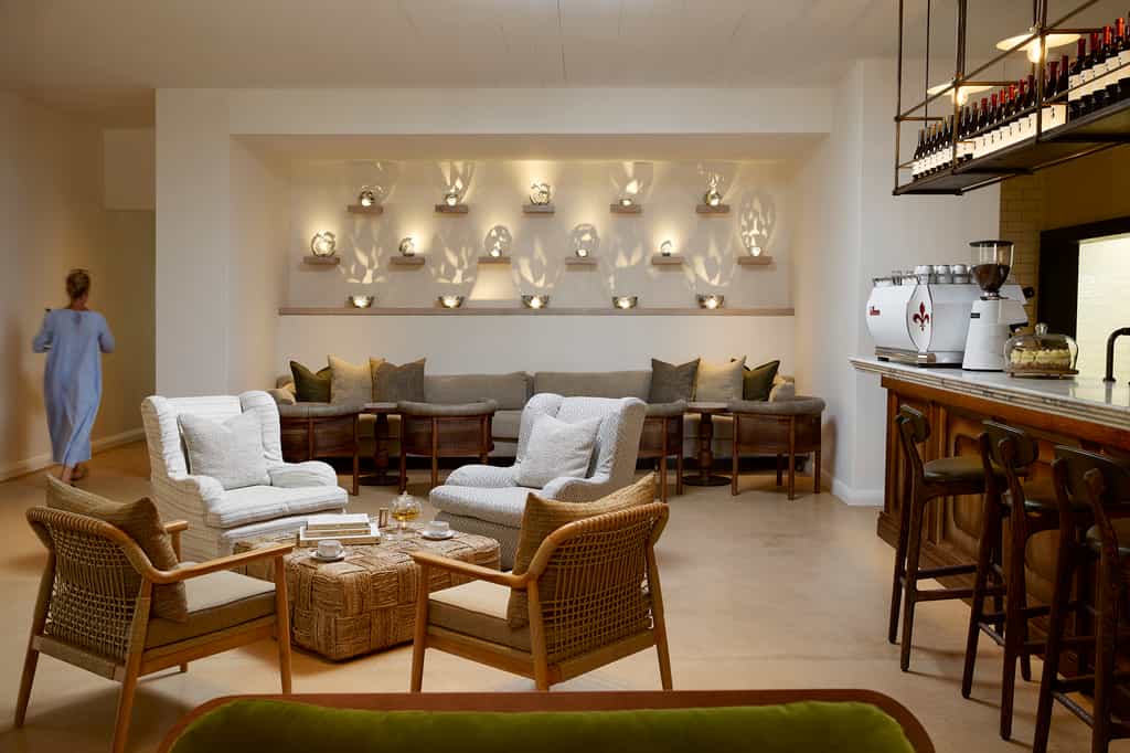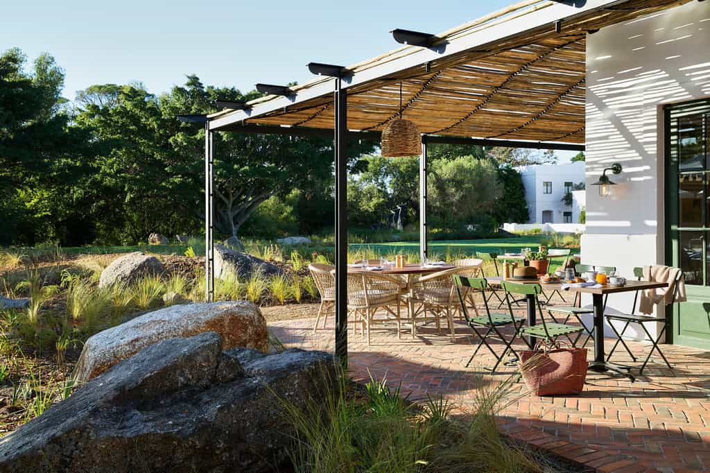 Old and new are beautifully combined here. The reception, main lounge, bar, terrace and restaurant each connect to the old farmhouse – a space of high-beamed ceilings and large breezeways, interleading glass doors, vibrant textiles and loads of hand-selected modern art pieces. And yet, there's nothing overwhelming; everything is discreet and relaxing. Sit outside on the sunny patio gazing at the vineyards, drape a blanket on the lawn for a picnic or snuggle up to a massive hearth.