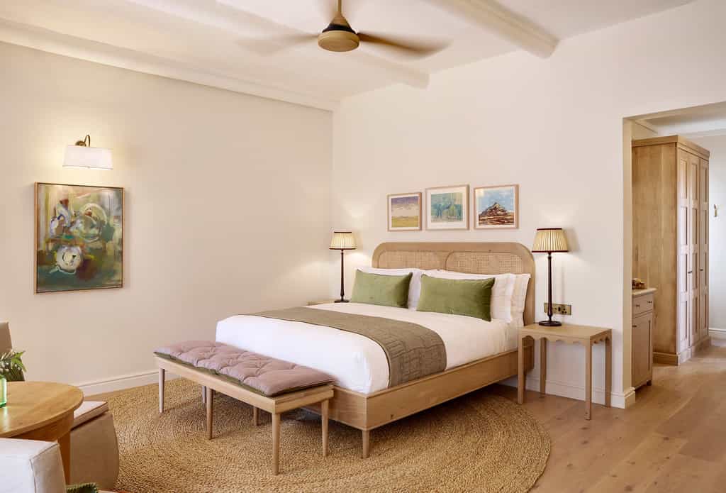 Accommodation is in clusters of cottages set around pretty courtyards. This layout makes the 80-room hotel feel intimate, no matter how full. Rooms vary in size and price – those on the ground floor have French doors opening to the garden; those above face the mountain. Premium rooms have a second-storey terrace or a private patio overlooking the river; and the family suite sleeps four. All units have king-sized beds and large, fully equipped en-suite bathrooms.