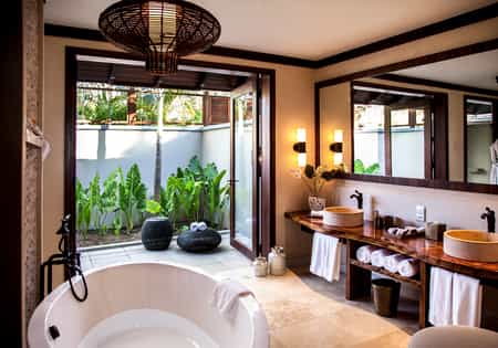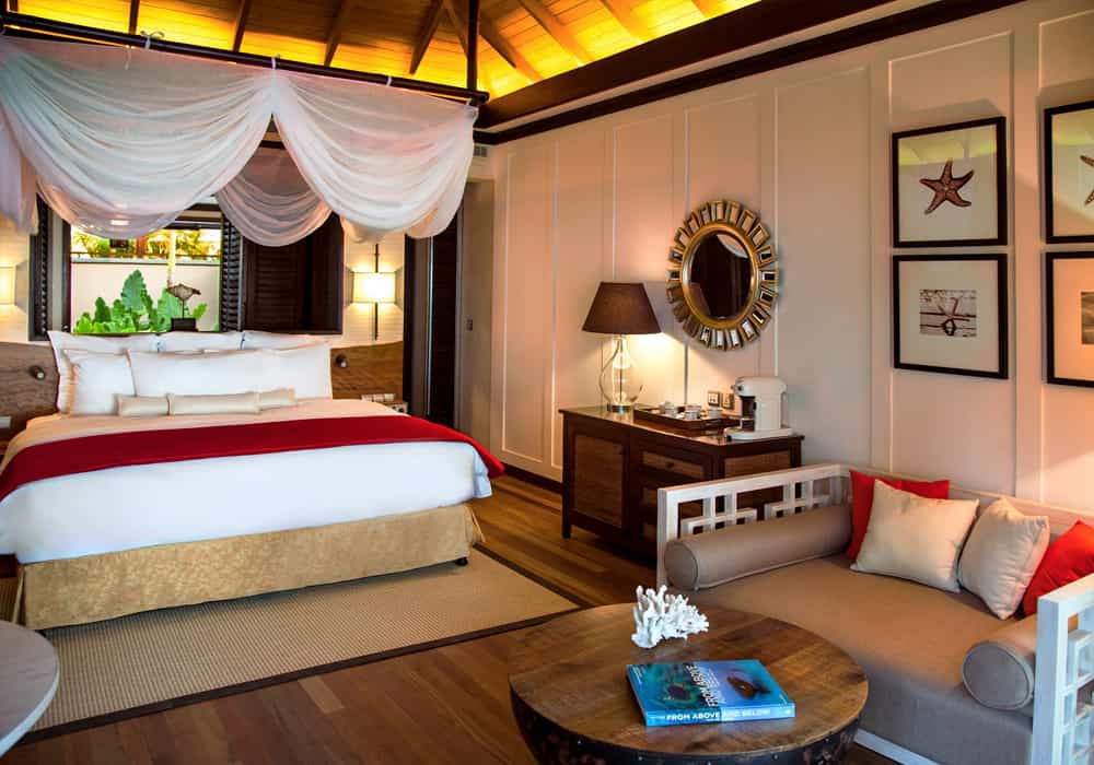 The Story has a selection of suites and villas, all designed in an elegant, island-chic style, and equipped with wifi and 24-hour room service. The villas enjoy a lounge and dining area, a private pool, cabana, and a terrace with uninterrupted views across the pristine sands, just a few steps away. Each room is furnished with a king-size canopy bed draped in netting and the bathroom has a free-standing tub and outdoor shower.