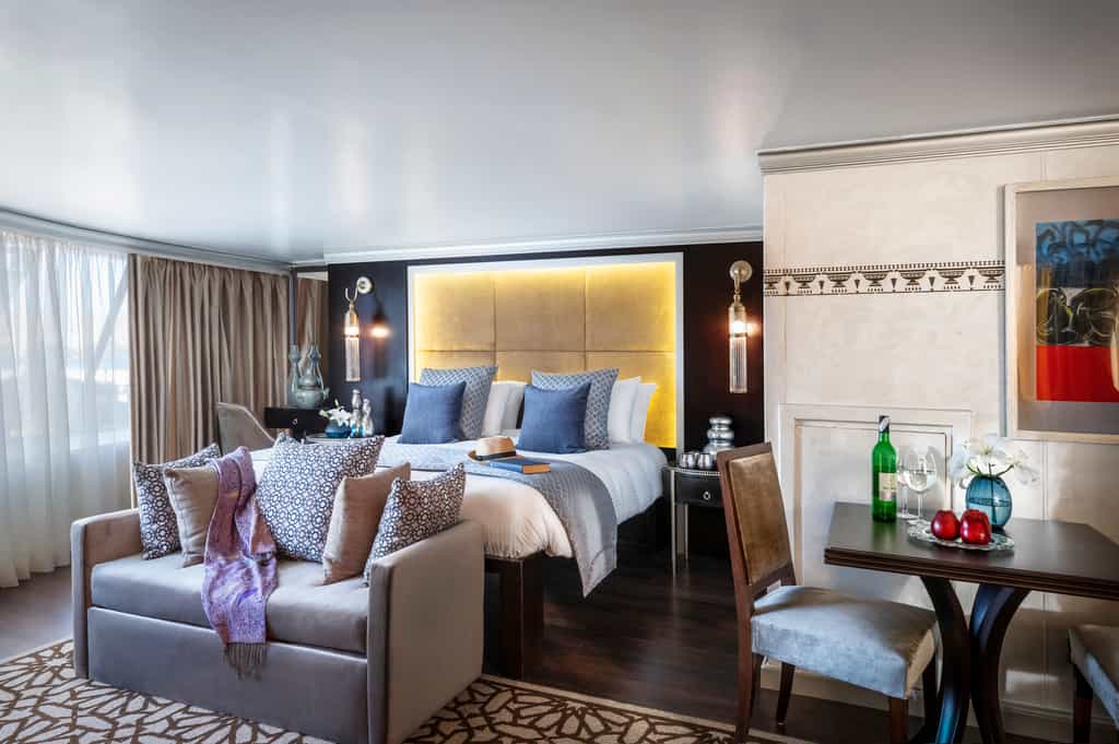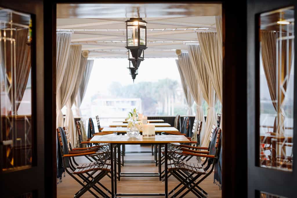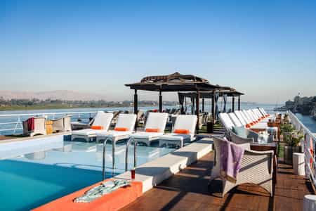 This state-of-the-art river boat is fitted with sleek, teak floors, plush furnishings and Art Deco-inspired trimmings. In the dining room, gourmet dishes are served alongside Egyptian wines and beers. You could even learn to whip up a local favourite at the cooking class. The sun deck is the hub of the boat and there's a lovely heated pool and rows of loungers to go around. For a cosier setting, head to the lower deck bar for G&Ts and fiery sunsets.