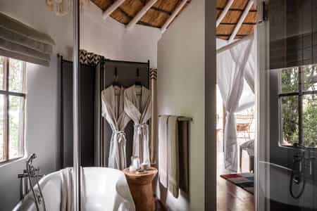 Raised walkways lead to 12 fabulous chalets tucked between the riverine trees. All have extremely comfortable king-sized or twin beds, safari-chic furniture, aircon, coffee-making facilities, a minibar and a private balcony. The en-suite bathrooms have baths and showers, twin basins, toiletries and hair dryers. Two private Chuma Houses are perfect for families or those a heightened sense of exclusivity. Each house has two en-suite bedrooms, a spacious lounge and dining area, a plunge pool – and a personal chef.