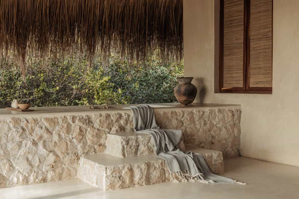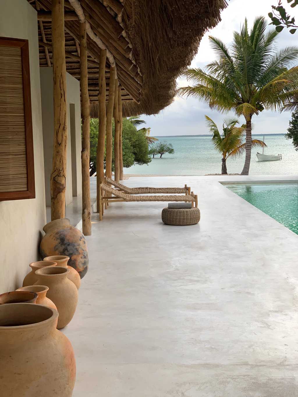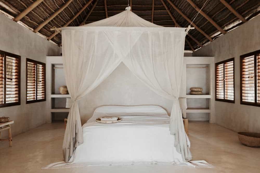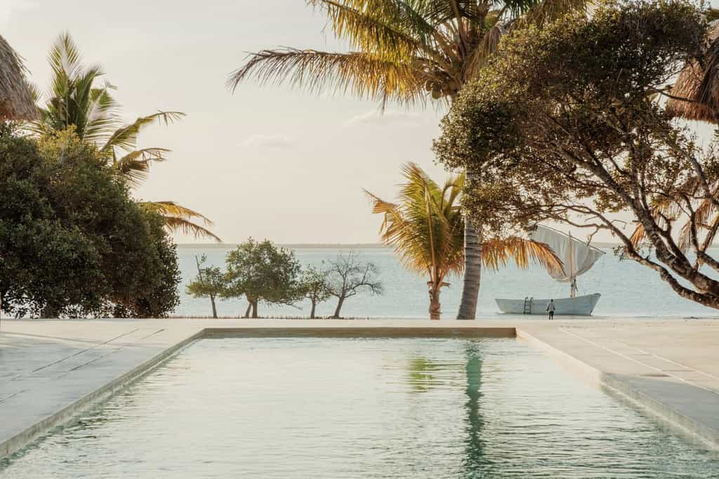 Private bungalows provide over a thousand square feet of personal space surrounded by nature. Each suite includes indoor and outdoor bathing facilities and generous water front verandahs. Mozambican vernacular architecture weaves a natural canopy above billowing mosquito nets. Large apertures allow the colours of an ever changing landscape to permeate the space. Rooms are dressed with furniture created and carved onsite and thoughtfully collected artisanal pieces from sub-saharan African.