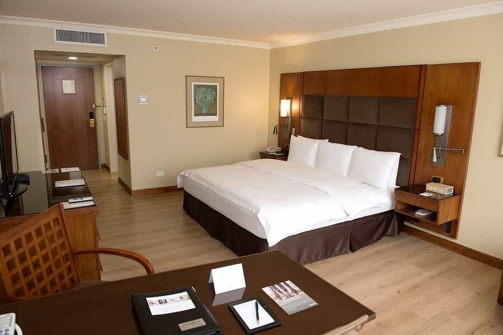 The hotel is sizable with 232 rooms and 43 executive apartments, all of which feature an understated design and earthy palette, and wide windows with views of the city or surrounding mountains. Set against rich wooden panels, the King-sized beds are draped in 300-thread count Egyptian cotton and there is a small sitting area by the window for view admiring. Other amenities include air-conditioning, Wi-Fi and tea / coffee facilities. The en-suite bathrooms are functional and spotless.