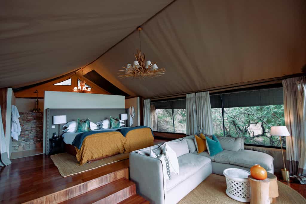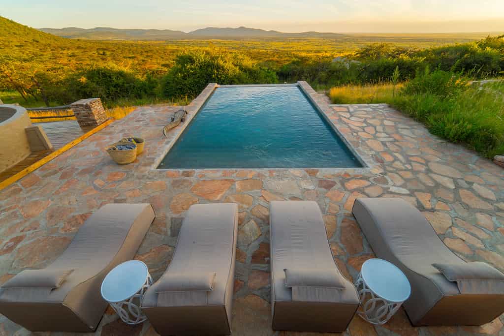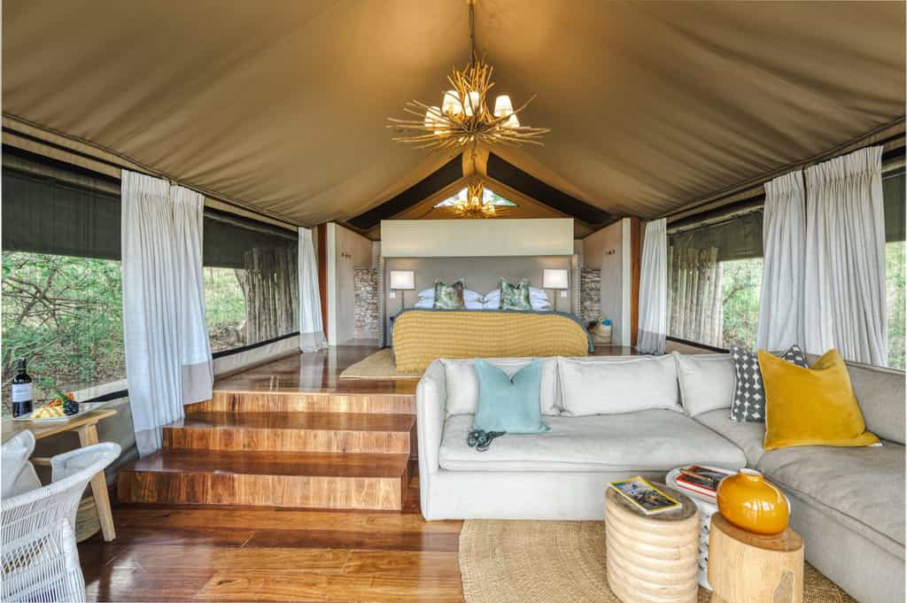 The thoughtfully designed and tastefully decorated main building is located at the top of the property and offers truly stunning views into the Serengeti National Park. It consists of three interior areas; the dining room, the main lounge with an indoor fireplace and a lounge bar. In addition, there are two outdoor patios with a large fire bowl and lounge chairs for reading and relaxing. The main lodge also has an ‘infinity swimming pool.
