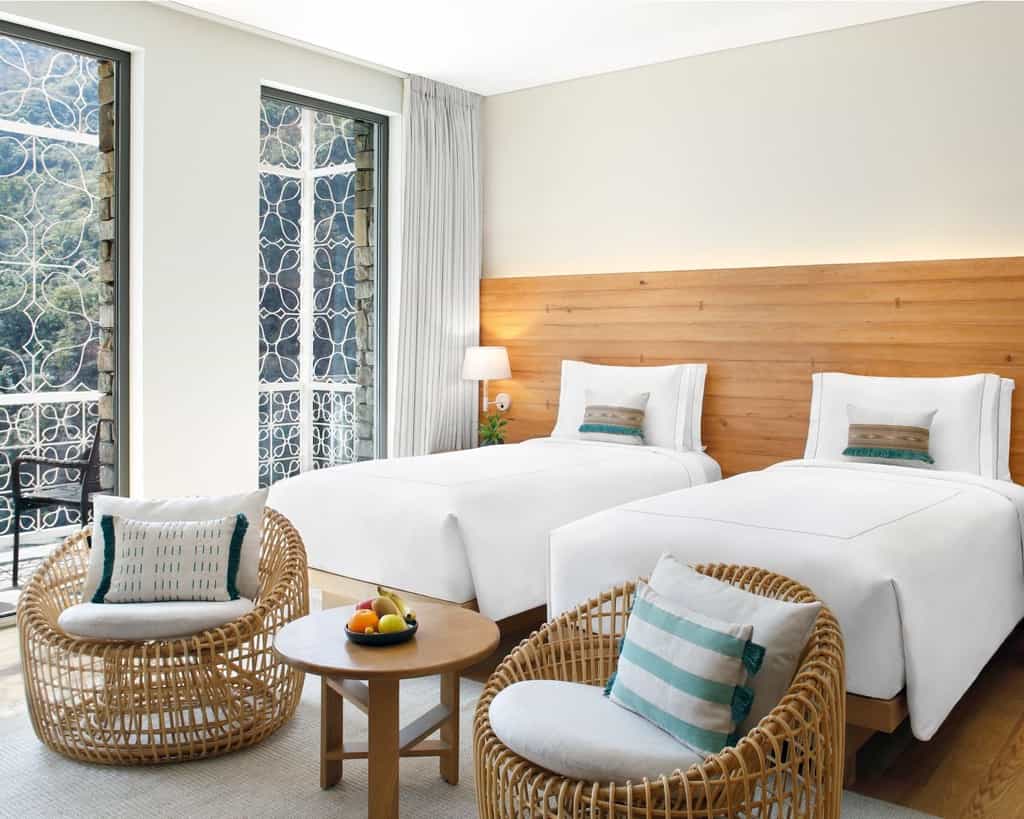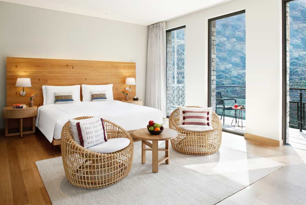 Built from locally sourced artisan materials and spread over 50,585 square metres, the architecture of this magnificent resort pays tribute to Himalayan villages and temple forts.