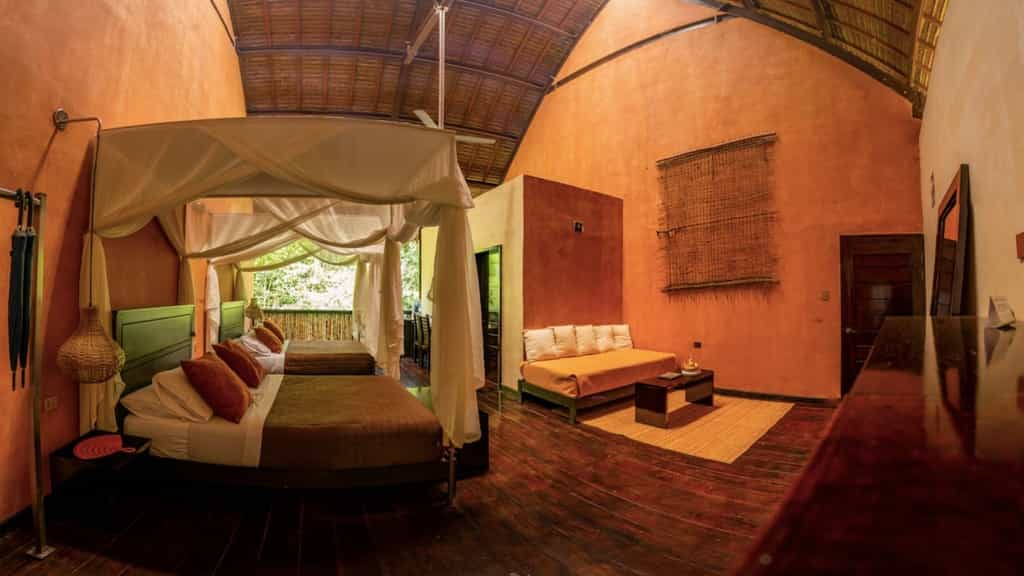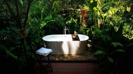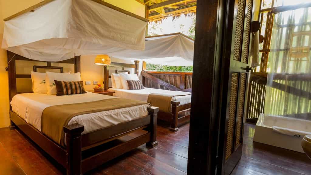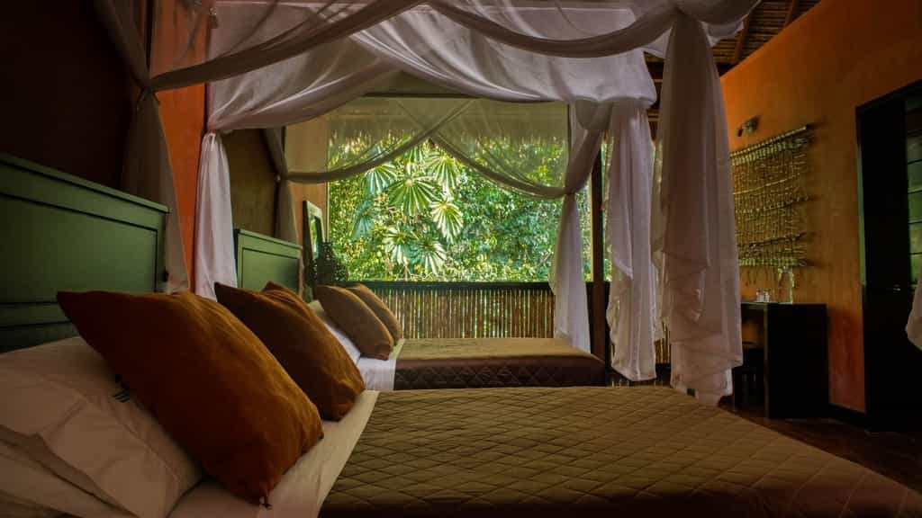 The design of the 24 rooms melds luxury, style and nature. As part of the experience, rooms have one open wall facing the rainforest - you’ll feel like you’re sleeping in the trees, serenaded by natural sounds. Ranging from superior to deluxe suites, the four room options all have mosquito nets over each bed, private bathrooms with hot showers, and eco-friendly toiletries. Most importantly, all offer easy comfort for a proper rest and recharge after a busy day.
