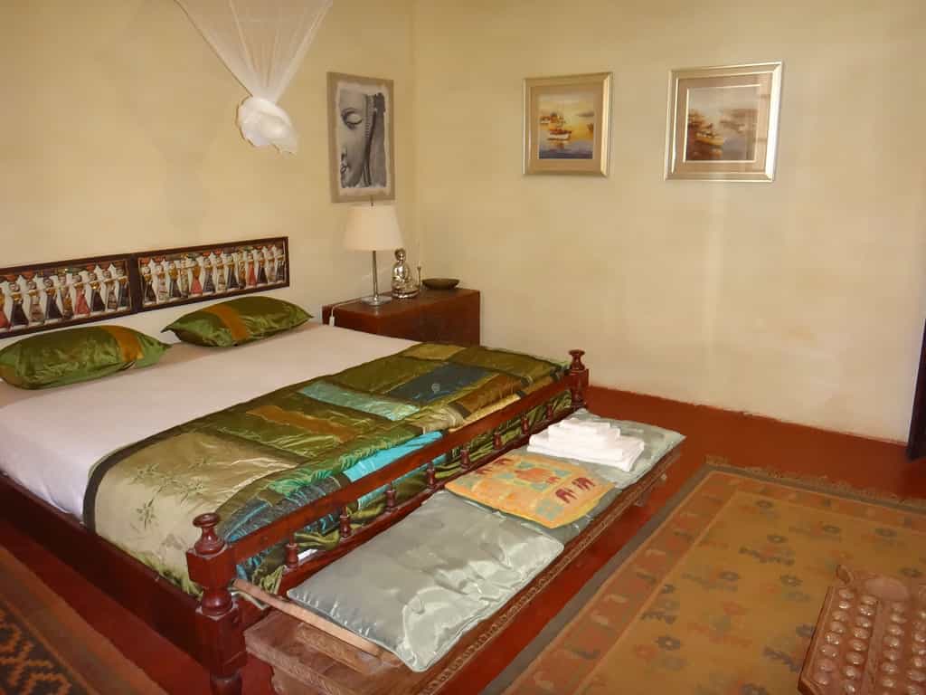 The six rooms are quite different in shape and size, each with a charming antique Arab/colonial style. Two downstairs en-suite rooms lead off the courtyard, one with a small lounge, and the other, larger, room with two extra beds, making it great for a family. A smaller en-suite room, and two with private bathrooms across the hallway, take up the first floor. Right at the top is a quaint, attic-style en-suite room that opens on to the roof terrace.