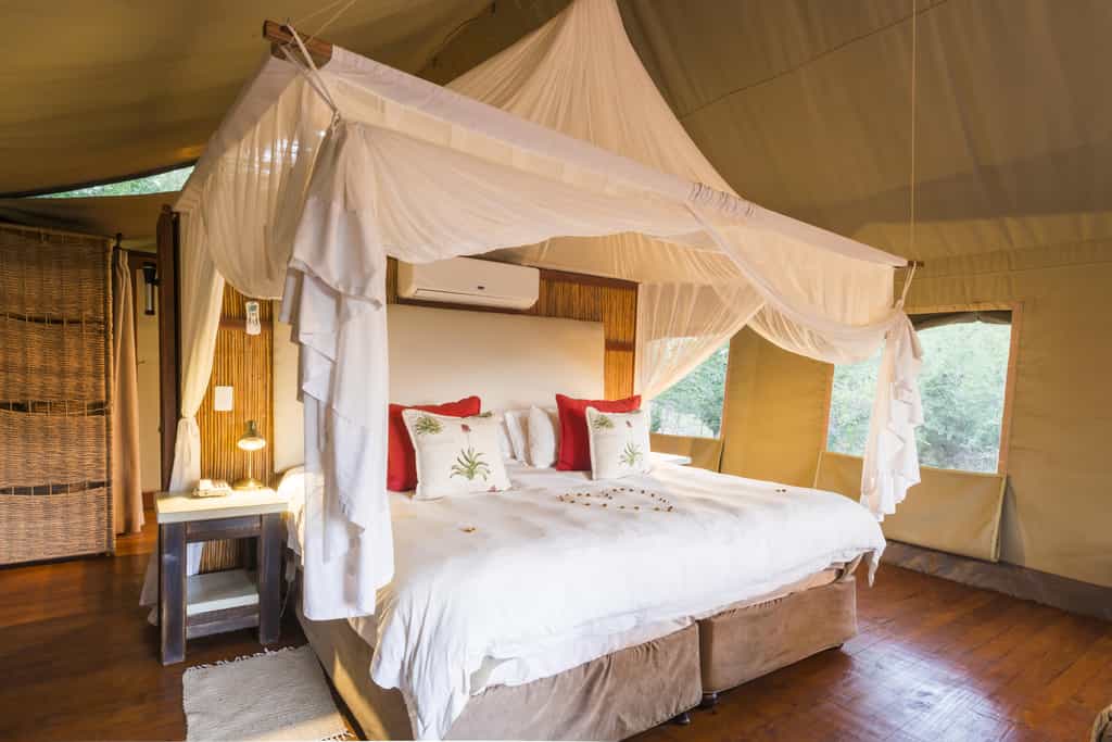 Thakadu River Camp consists of 12 en-suite luxury tented suites that can accommodate 24 guests. All tents are large and spacious, air-conditioned and the ensuite bathrooms come complete with indoor showers and free-standing baths (heaven at the end of a long day's game viewing!) Slide open the doors and step out to your private viewing deck for the most magnificent views over the Marico River. Four of the suites are family units and have an additional queen-size sleeper couch for kids.