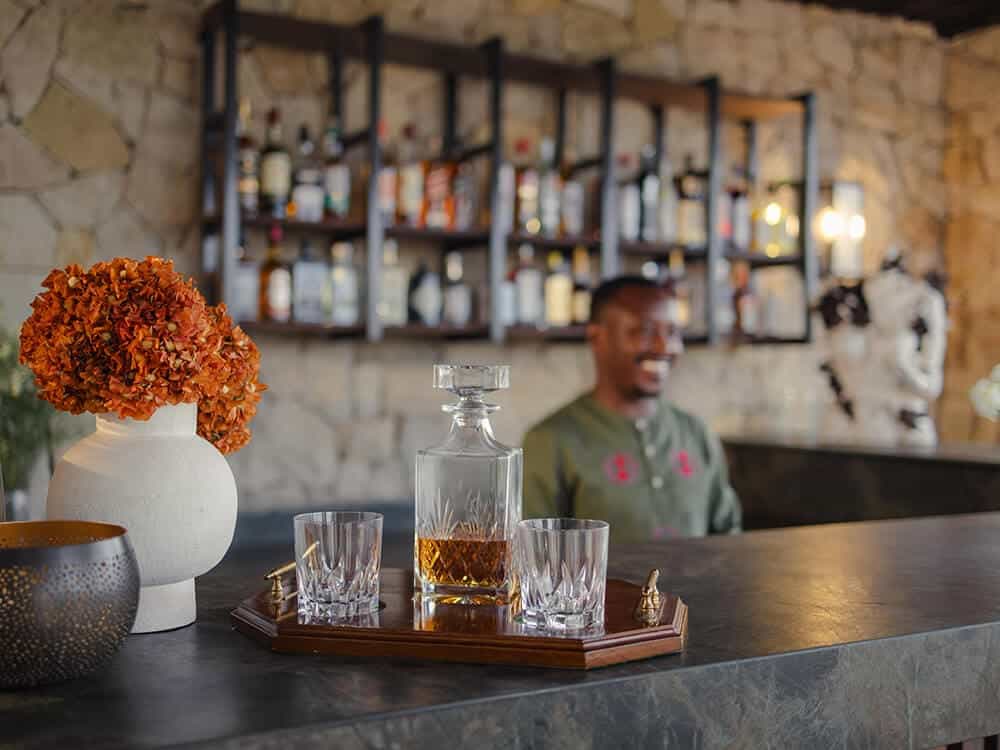 Thanda Safari Lodge’s main area is colourful and drenched in light. The lounge oozes African abundance with plush sofas and huge windows overlooking a waterhole teeming with game. With dark wooden accents brightened by rich hues and African art, this is the starting point for steaming coffee and biscuits or the hearty lunch that begins every game drive. There is also a library, private business area, cigar bar, wine cellar and a huge deck overlooking the reserve.
