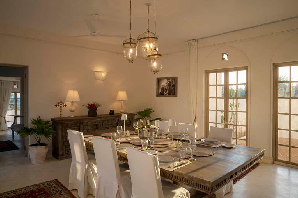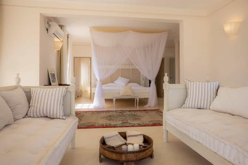 The Beach Palace features nine comfortable ensuite bedrooms with air-conditioning, overlooking the Indian Ocean. Each room has its own privacy and a private terrace or garden, or direct access to the infinity pool. Each room of the villa is furnished with fine items from local artisans, Italian fabrics, Oriental carpets, and antiques from our collection from around the world.