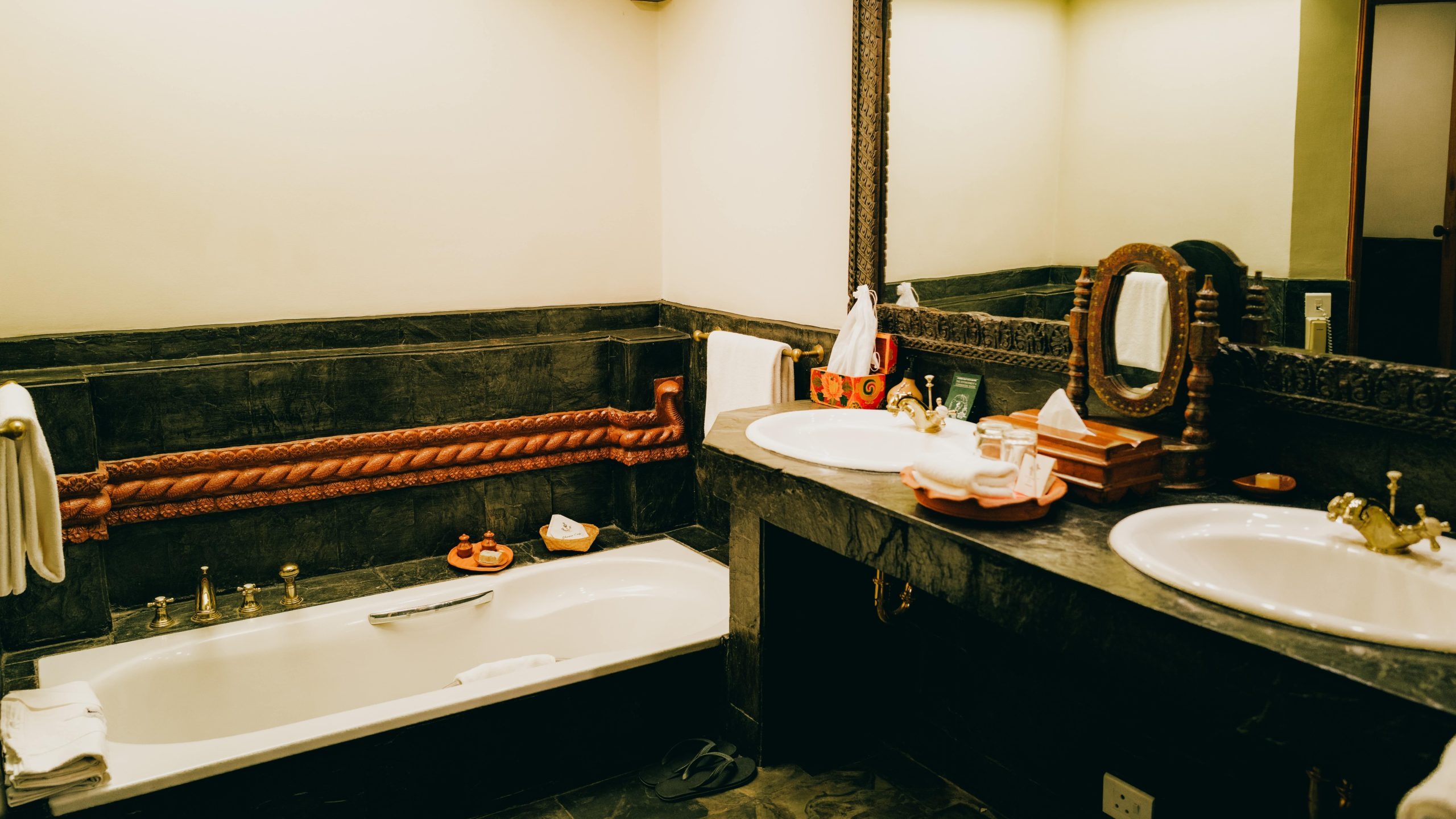 Step through those magnificent carved doorways and Kathmandu's mayhem dissolves into birdsong, Nepalese music and gentle, trickling fountains. The buildings wrap around intimate courtyards where pomelo trees drop fruit and the swimming pool mimics ancient royal baths. Krishnarpan restaurant takes Nepali cuisine seriously with marathon tasting menus, whilst Mako's does precision Japanese and matcha ice cream. The spa works Himalayan magic with herbs grown in the garden, and there's a working woodcarving studio where craftsmen chip away at the next generation of heirlooms.