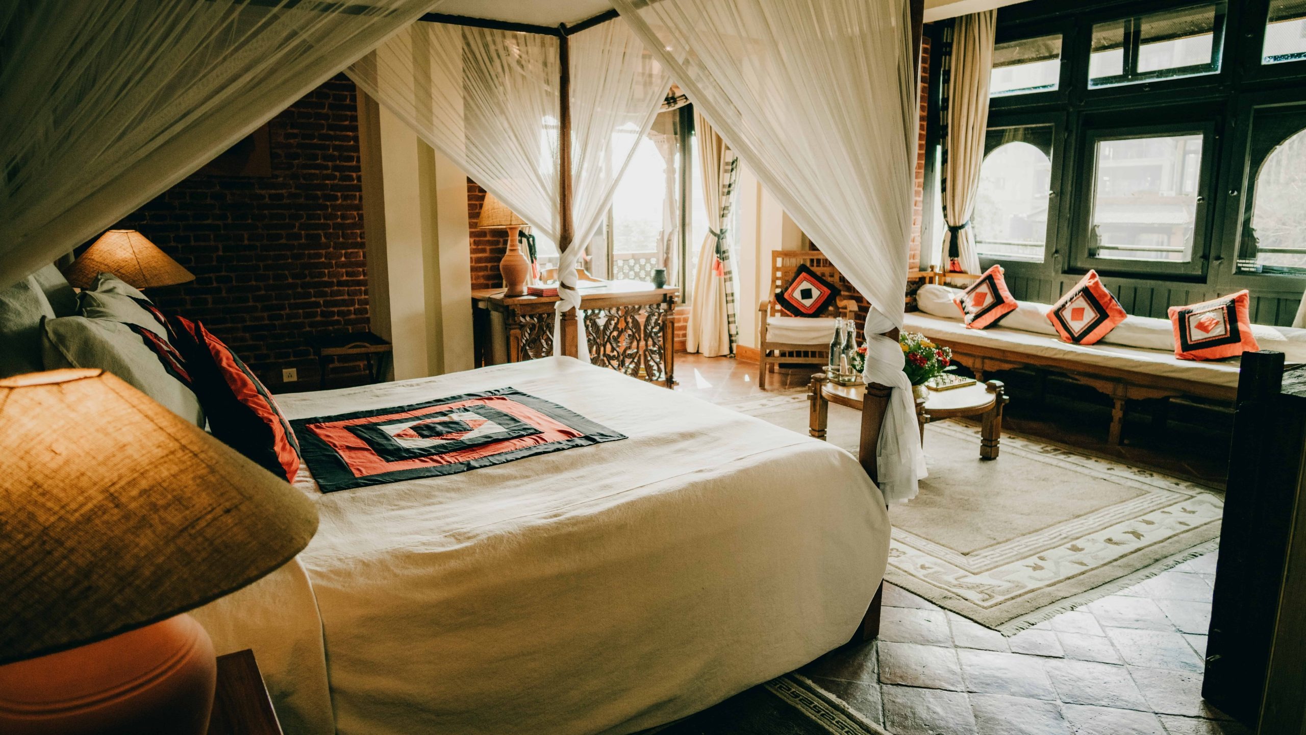 Each of the 86 rooms feels like sleeping in a museum where you're actually allowed to touch everything. Four-poster beds gaze up at hand-carved ceilings, some of which are genuinely medieval, whilst bathrooms spoil with soaking tubs and rain showers. Everything's handmade – from the woven sheets to the soap – and little touches like traditional board games and plunger coffee remind you this isn't a luxury chain. The Royal Suite stretches to palatial proportions, though even standard rooms feel special with their intricately carved details.