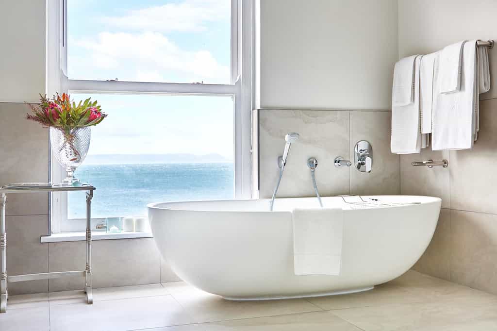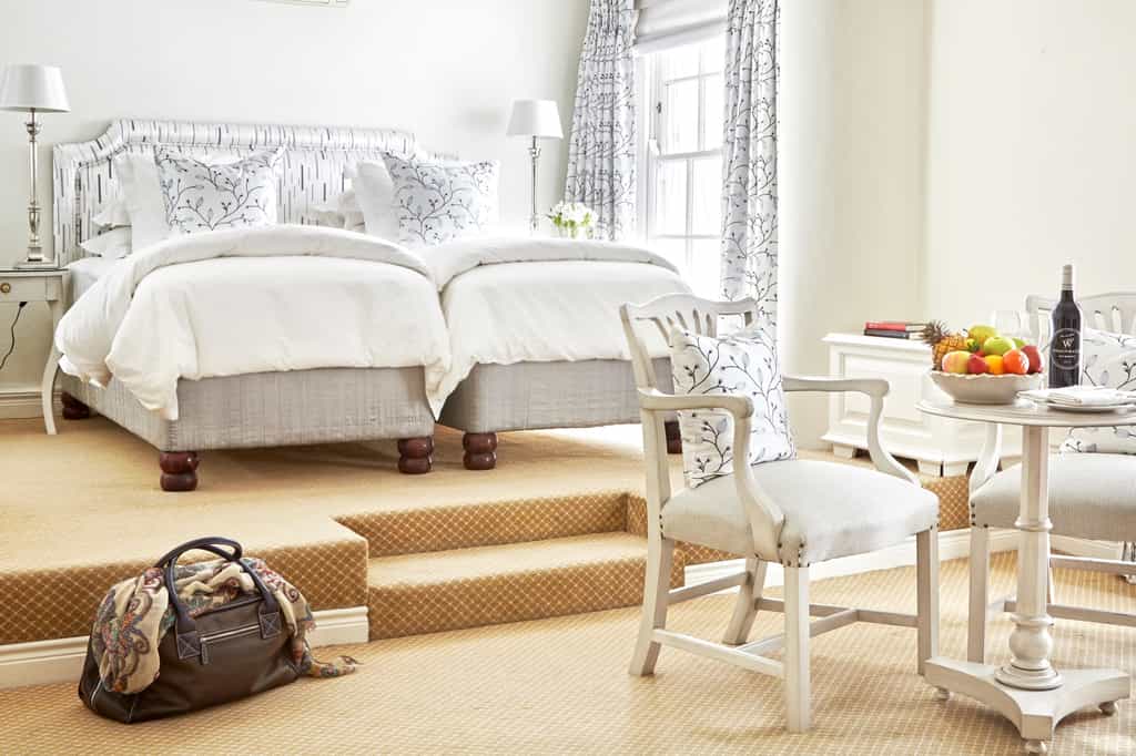 Forty beautifully appointed en-suite rooms and suites are of varying styles and sizes, from the classic Double Rooms, to the larger Luxury Doubles and Premier Suites. The décor is elegant with elements of maritime inspiration and all have air conditioning, heated floors, and tea and coffee making facilities. Views vary, with some rooms overlooking the courtyard and surrounding mountain backdrop, whilst the front-facing rooms (some with private balconies) enjoy glorious ocean views. Suites have a separate living area, and two have open fireplaces.