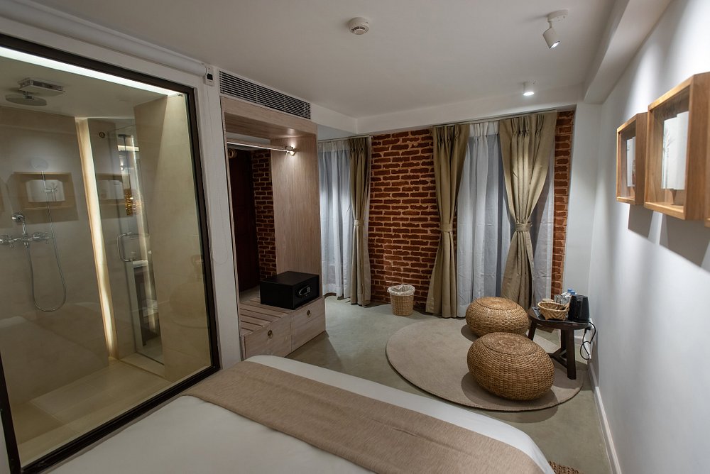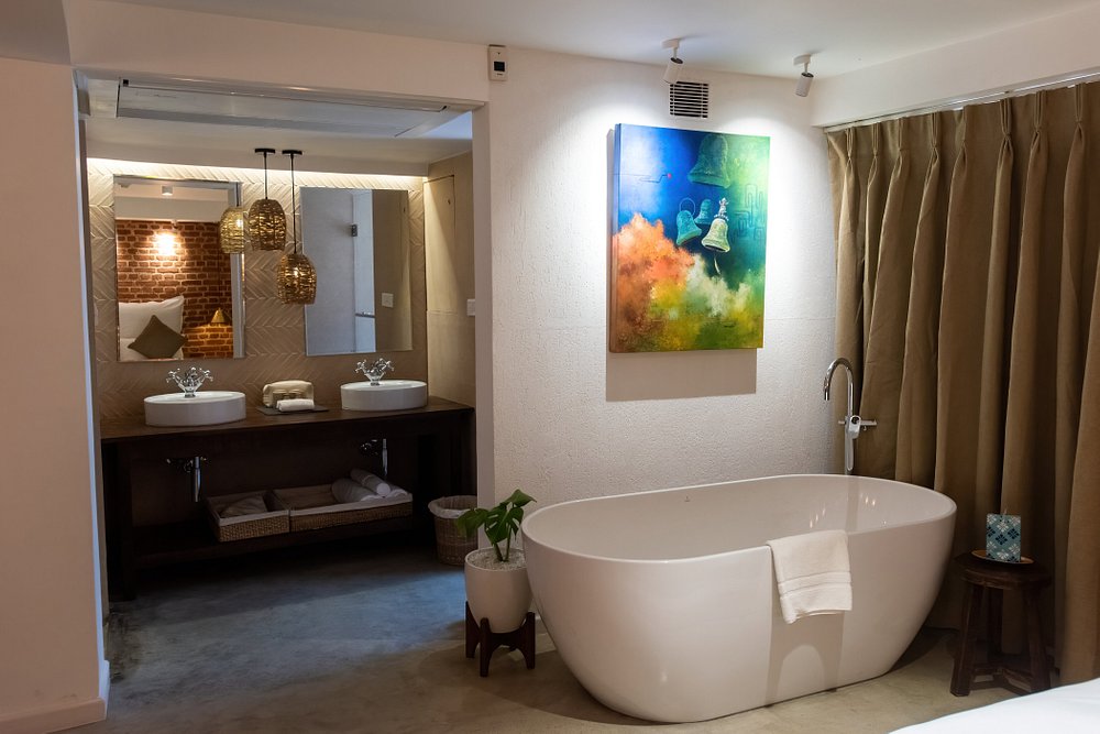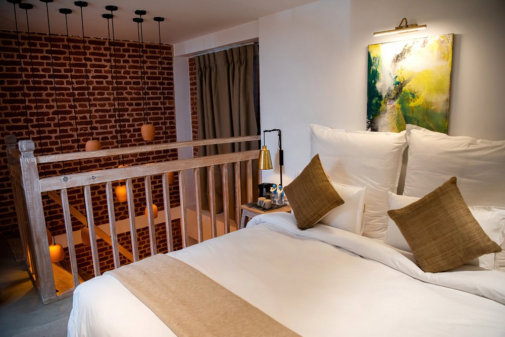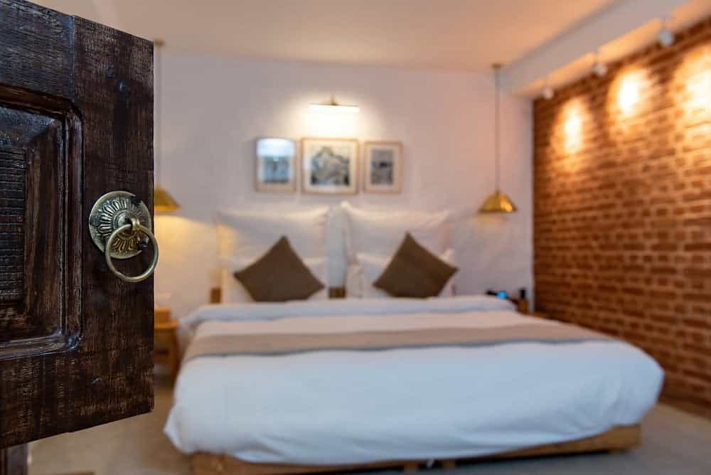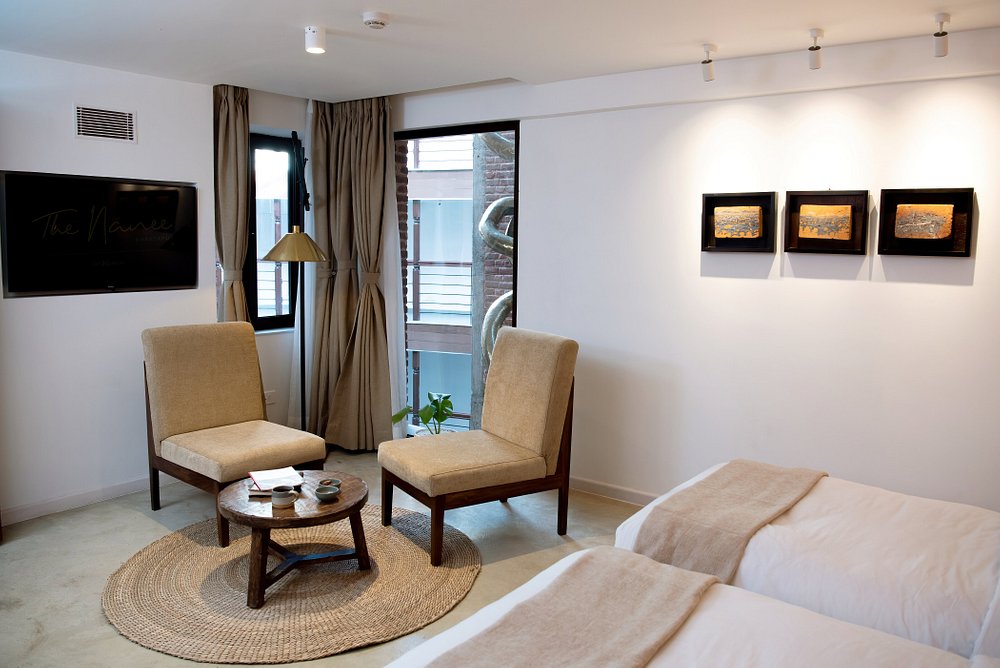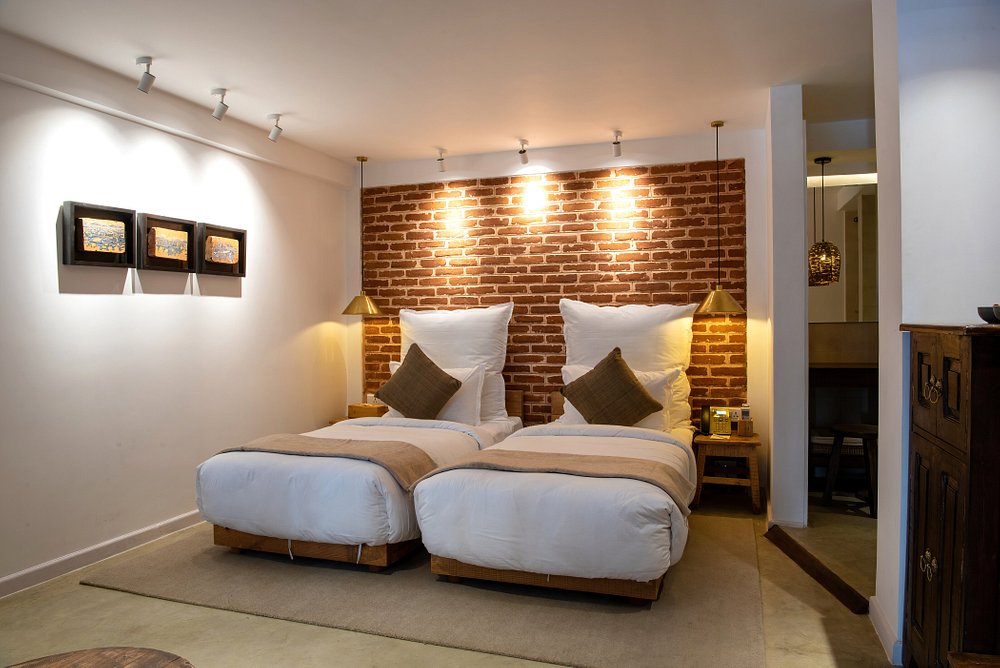 18 rooms are spread across four categories, from intimate Standard Rooms with queen beds to spacious Nepali Suites with in-room hot tubs. The palette is earthy and serene with plenty of exposed brick, local artwork and traditional Newari door handles, while handwoven textiles, pottery and wooden furnishings connect each space to Bhaktapur's artisan heritage. Loft rooms make clever use of high ceilings and double-height windows, while Sky Garden rooms look onto the courtyard with added lounge space. All have aircon, en-suite rain showers and a knack for feeling larger than their footprint suggests.