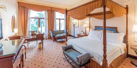 Guaranteeing comfort and the same sense of heritage you see throughout the rest of the hotel, the rooms and suites are all well-designed and spacious. There are 204 to choose from, some offering views of the city, others of the garden, and all come with TV, air-conditioning, tea and coffee, a safe and a well-stocked minibar. Highlights are probably the sparkling, marble-clad bathrooms and their beautiful array of Ayurvedic toiletries, and the ones with views of the tranquil courtyard. Dreamy.