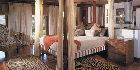 Across the bridge from the central lodge, the Vanyavilas' luxury tents make a welcome return after a day of exploring. A king size bed, writing desk and plump armchairs set the scene. The bright tents have a high, embroidered canopy and creamy walls, complete with a chaise lounge on the patio and attentive butler service. Other handy amenities include air con, a fully-stocked mini bar, pillow menu and an in-house movie collection. The bathrooms are decked out with a clawfoot tub, high-pressure shower and silk bathrobes.