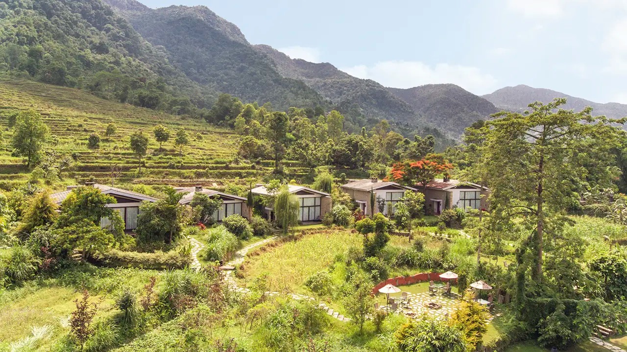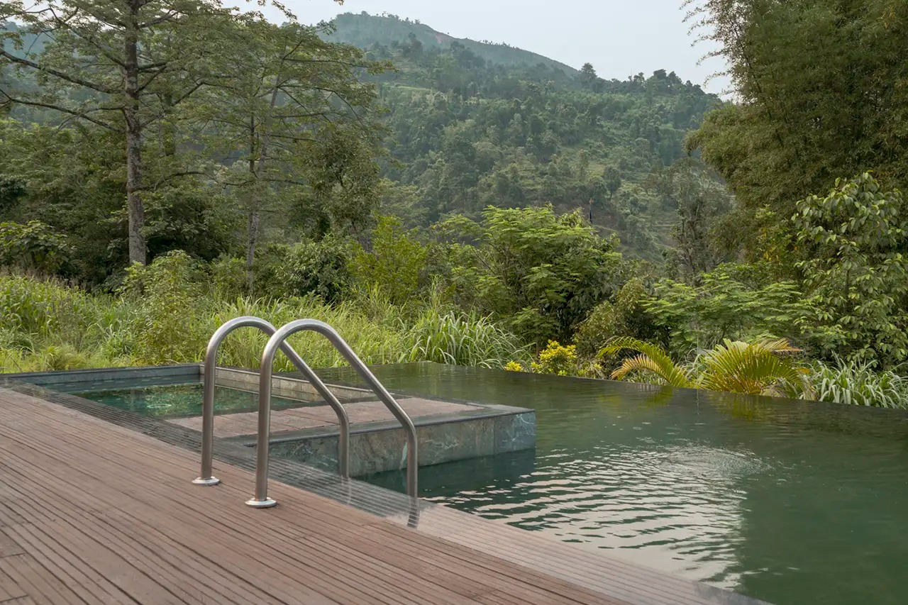 Life at The Farm revolves around Bhetghat, a split-level clubhouse with a restaurant, bar, spa and an infinity pool filled with Himalayan salt water overlooking the rice paddies. At Lake View, things are more stripped back: a natural spring pool, open-air dining and the Annapurnas as your constant backdrop. Both properties run entirely on renewable energy, with grey water filtered through plants and cattle manure converted to cooking gas. Spa Svastha offers Ayurvedic treatments using botanicals gathered from the mountains – the singing bowl therapy is a particular highlight.