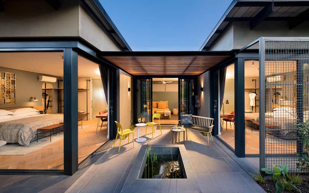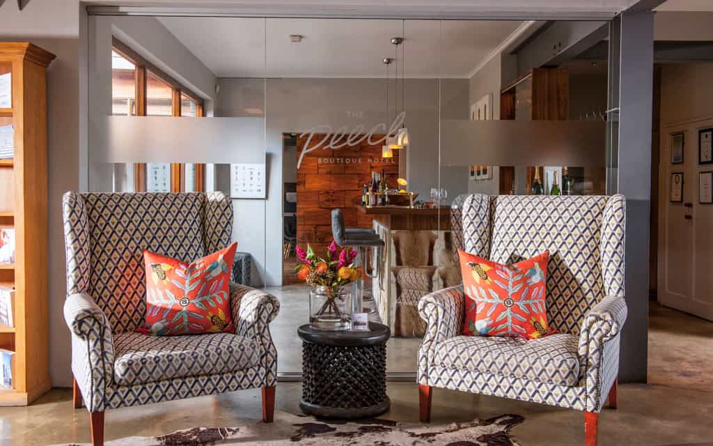 The Peech Hotel used to be a private residence, and it has retained its homely feel with a modern designer attitude throughout. The main guest area has a comfortable lounge and quiet library in the original part of the house, and overlooks the landscaped gardens and swimming pool. Chunky stone pathways connect to the rooms and suites. The top-tier Basalt restaurant and champagne bar offers fine wining and dining, and the Garden serves light, casual meals al fresco style.