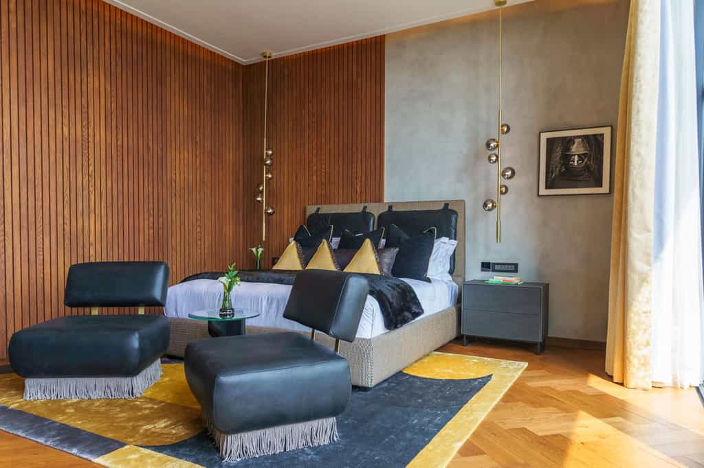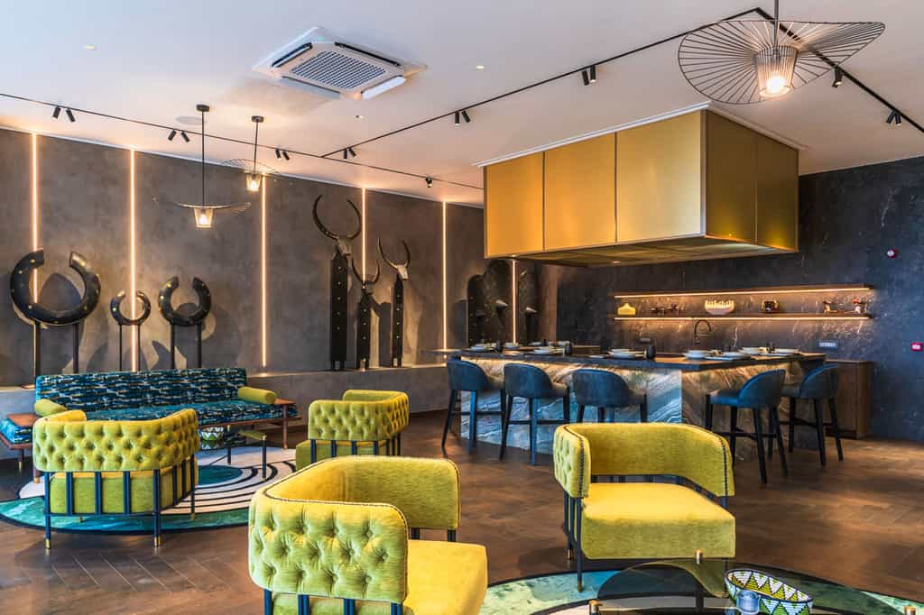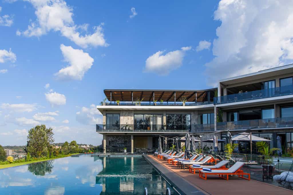 of 8,500 square meters of built-up area, the hotel redefines palatial in the eye of Kigali.