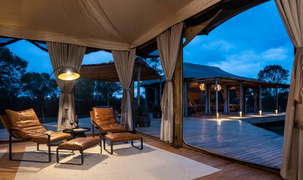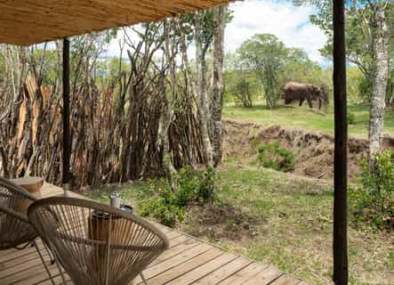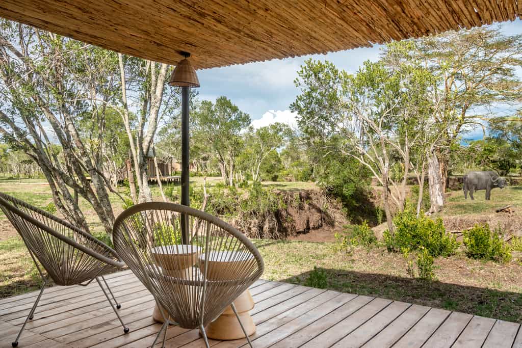Built on raised timber decks to minimise its footprint, the communal areas are delightfully open-air with the Ngobit River wrapping around three sides. The dining pavilion serves exceptional cuisine made with local ingredients, while the bar stocks an array of wines and craft cocktails. A swimming pool provides respite from game drive dust, and the treatment tent offers massages with birdsong accompaniment. Solar power and sustainable design principles run throughout, reflecting the camp's eco-conscious ethos. Everything faces outward to really make the most of those Mount Kenya views and wildlife action at the river.