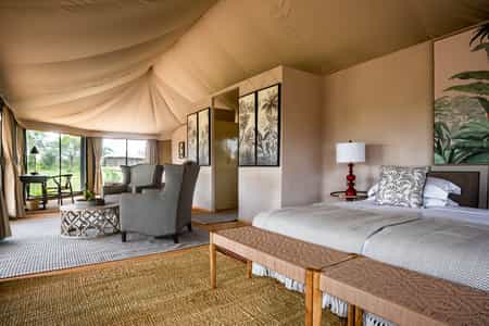 Perched on the banks of the Ngobit River with Mount Kenya's snow-capped peaks as its backdrop, The River Camp delivers intimate luxury in one of Africa's most pioneering conservation areas. Sprinkled along the riverbank, there are just eight tents (the camp has a max of 20 guests), making sure you get the full exclusive experience in renowned Ol Pejeta Conservancy. Beyond Big Five encounters, you'll witness leading conservation efforts firsthand, from tracking lions with researchers to meeting the planet's last two northern white rhinos. With private decks overlooking wildlife watering holes and spa treatments after action-packed days, it's safari sophistication with serious conservation credentials.