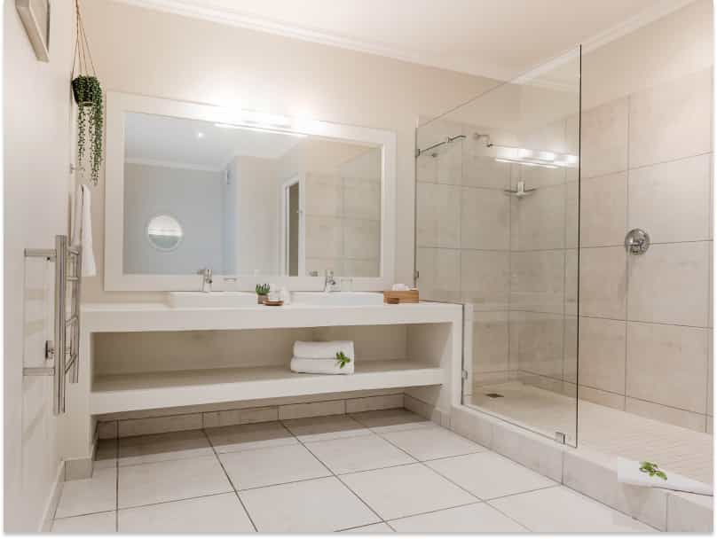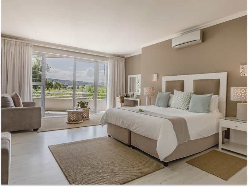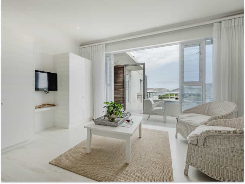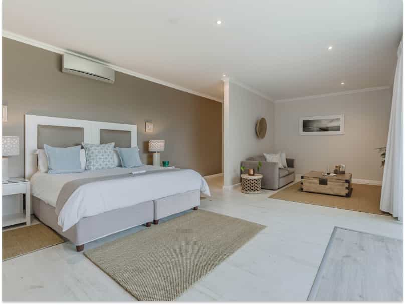 Twenty-nine rooms range across the four villas – Beachy Head, Robberg, Cottage Pie and Cordovan. The interiors are crisp, clean and quite lovely, with furnishings that echo the pale blue and grey tones of the sea. All rooms have wi-fi, and en-suite bathrooms. Standard rooms for two open to interior courtyards; double and twin rooms offer partial sea views. The View rooms face the ocean or indigenous garden; the suites have extra space. The self-catering cottages have open-plan living/kitchen facilities.