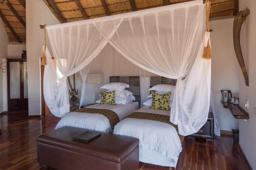 Royal Madikwe can accommodate 14 people in 5 beautifully appointed units - a family villa and 4 suites. The suites consist of a Luxury Double Suite, ideal for couples, a luxury Twin Suite -perfect for friends or older siblings, and a Honeymoon Suite for romantic getaways. The spacious two-bedroom Emperor Suite and the Royal Villa have two bedrooms and cater for families. Guests can enjoy the exclusivity of a private pool, game-viewing deck, fireplace, en-suite bathroom, indoor and outdoor shower.