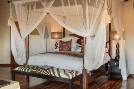 The interiors are mainly inspired by nature. Clean natural hues and rich organic textures are infused with bright splashes of tribal colours. The Royal Clubhouse consists of a stylish lounge, a dining room and a library which lead to elevated decks with sweeping views of the African bush. A tranquil infinity pool overlooks the waterhole giving way to lush surroundings. There is a TV Lounge with satellite TV, a boma for outdoor dinners and an gift shop.