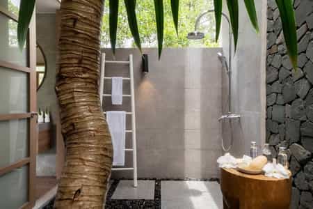 With polished wooden floors and soft grey furnishings, there's a selection of guest rooms and larger residences. The interiors are simple yet delightful, and each room has a king-size bed and an open-air bathroom with a rainfall shower and egg-shaped tub. The J-Suite comes with eclectic artwork, a large canopy daybed and a jacuzzi pool out on the deck. Some residences have a shady sala and plunge pool, while the two-bedroom villa is perfect for families with a dining terrace and connecting rooms.