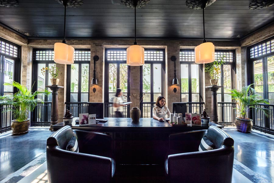 At the centre is a bright atrium brimming with greenery, which leads to The Siam's rooms along marble corridors. Take your Thai cuisine at the riverside Chon Thai restaurant, set in a cluster of ancient teak wood houses. Lined with over-sized posters and brass instruments, Deco Bar and Bistro serves a mean breakfast; the Cafe Cha is the place to go for afternoon tea (with champagne if you like!) and the Bathers Bar provides cocktails on sunny day beds. Spend a relaxing few hours at the Opium Spa with treatments tailored just for you.