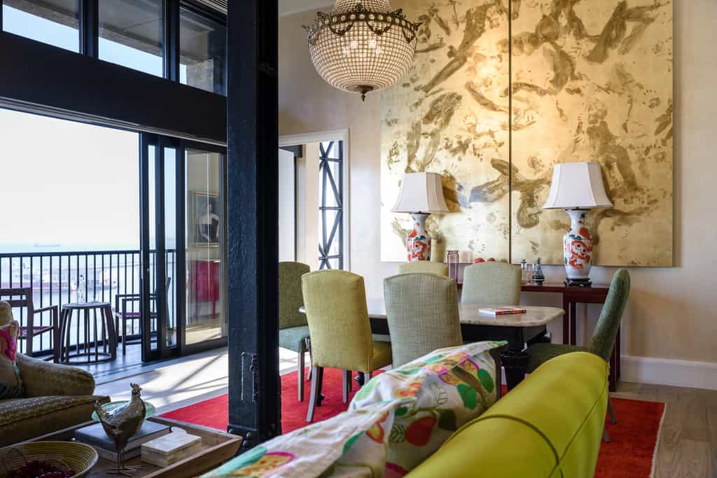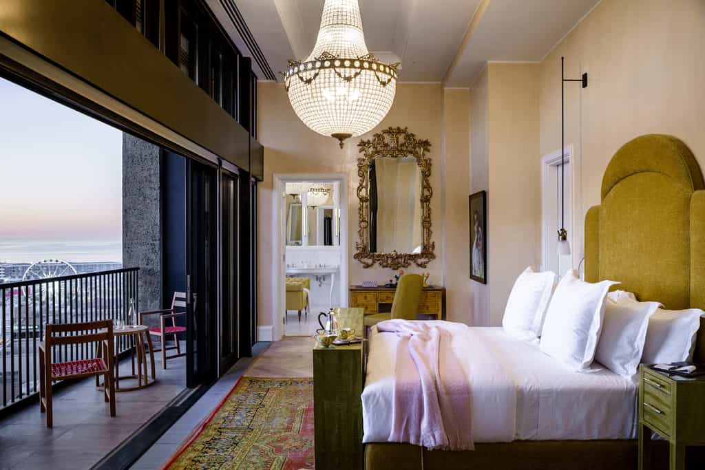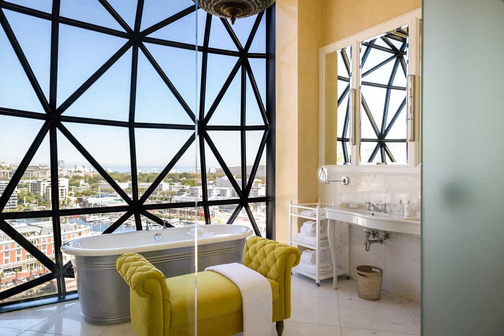 Twenty eight en-suite lavishly decorated rooms, including one spectacular rooftop penthouse suite, are located across the upper hotel levels, with staggering views of the city, harbour and Table Mountain. Each is individually decorated, and features original African artwork and elegant urban-inspired designer touches. The rooms vary in size, with plenty of vertical space and floor-to-ceiling pillowed glazing panels which have been cleverly designed to give the windows a slight balloon effect and a beacon-like glow at night.